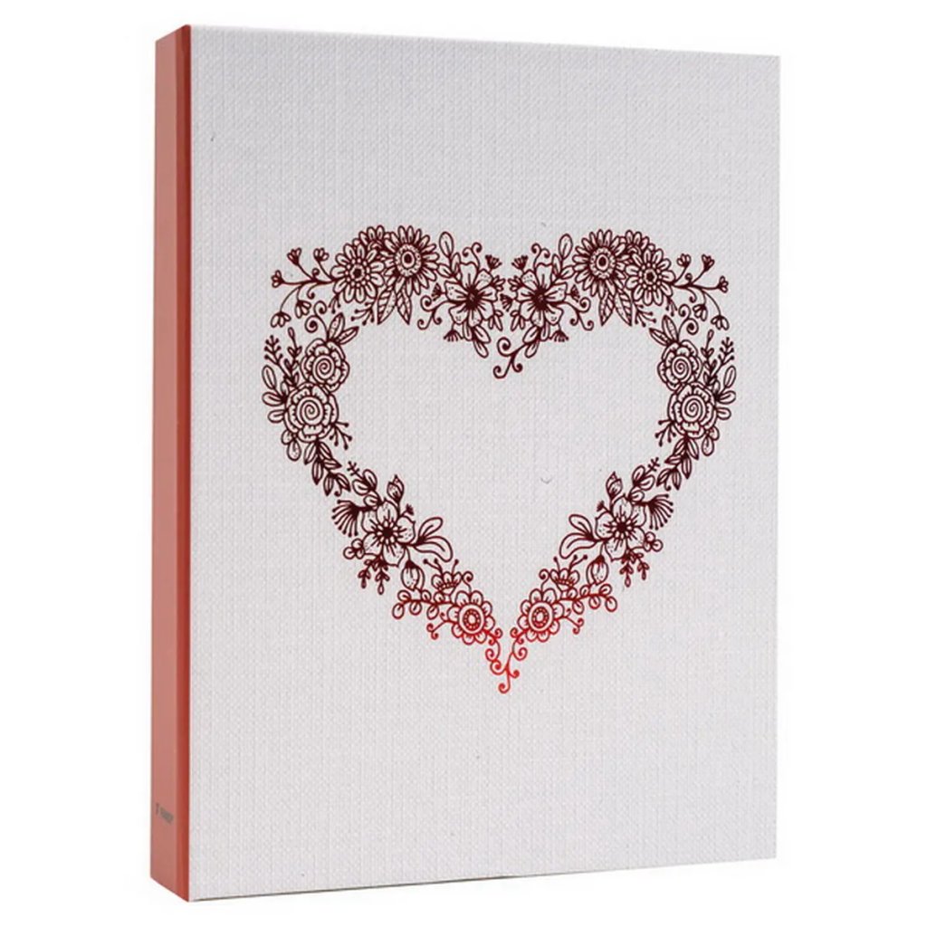 Jedná se o malé a kompaktní svatební zasunovací fotoalbum s laminovanou obálkou v něžných tónech. Album má svařovanou vazbu ve formě knihy. Je ideální pro uchování 36 fotografií formátu 13 x 18 cm, které se vkládají zasouváním, a neumožňuje popisky. Listy jsou vyrobeny z bílého PVC/PP materiálu. Na obálce je vyobrazen romantický motiv tvořený srdci. Album je skvělé pro uchování menší sbírky svatebních fotografií nebo jako dárek.Doplňkové parametry