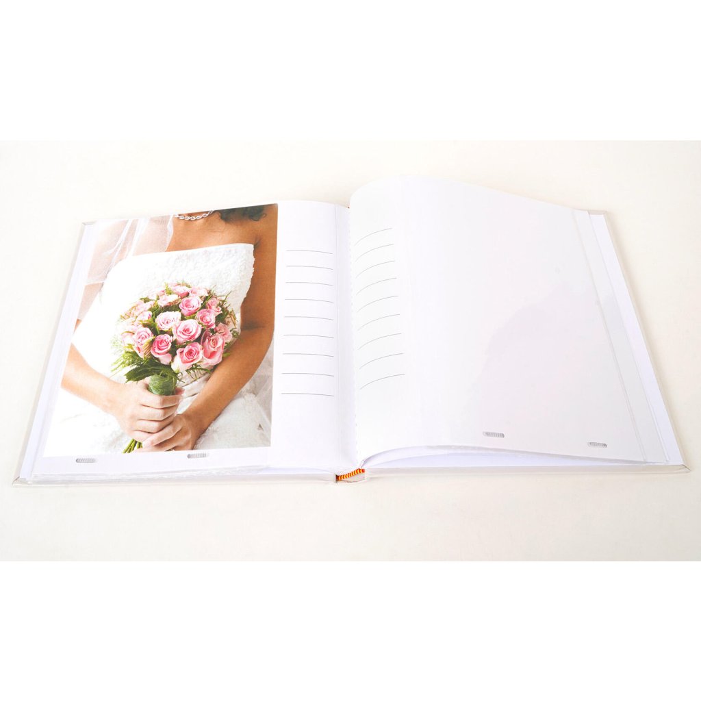 Uchovejte si vzpomínky na svůj svatební den v tomto elegantním svatebním fotoalbu. Pevné desky z laminovaného papíru a šitá vazba zaručují odolnost a dlouhou životnost. Album pojme až 50 fotografií ve formátu 15 x 21 cm. U každé fotografie je navíc prostor pro vlastní poznámky, díky kterým si snadno uchováte všechny důležité okamžiky.Doplňkové parametry