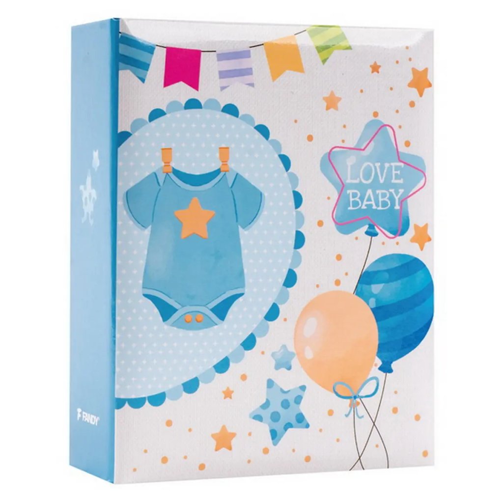 Jedná se o malé a kompaktní dětské fotoalbum s laminovanou obálkou ve světle modro-bílých barvách. Album má svařovanou vazbu ve formě knihy. Je ideální pro uchování 100 fotografií formátu 9 x 13 cm, které se vkládají zasouváním, a neumožňuje popisky. Listy jsou vyrobeny z bílého PVC/PP materiálu. Na obálce je vyobrazen roztomilý dětský motiv. Album je skvělým dárkem pro novopečené rodiče k uchování vzpomínek na první měsíce života dítěte.Doplňkové parametry