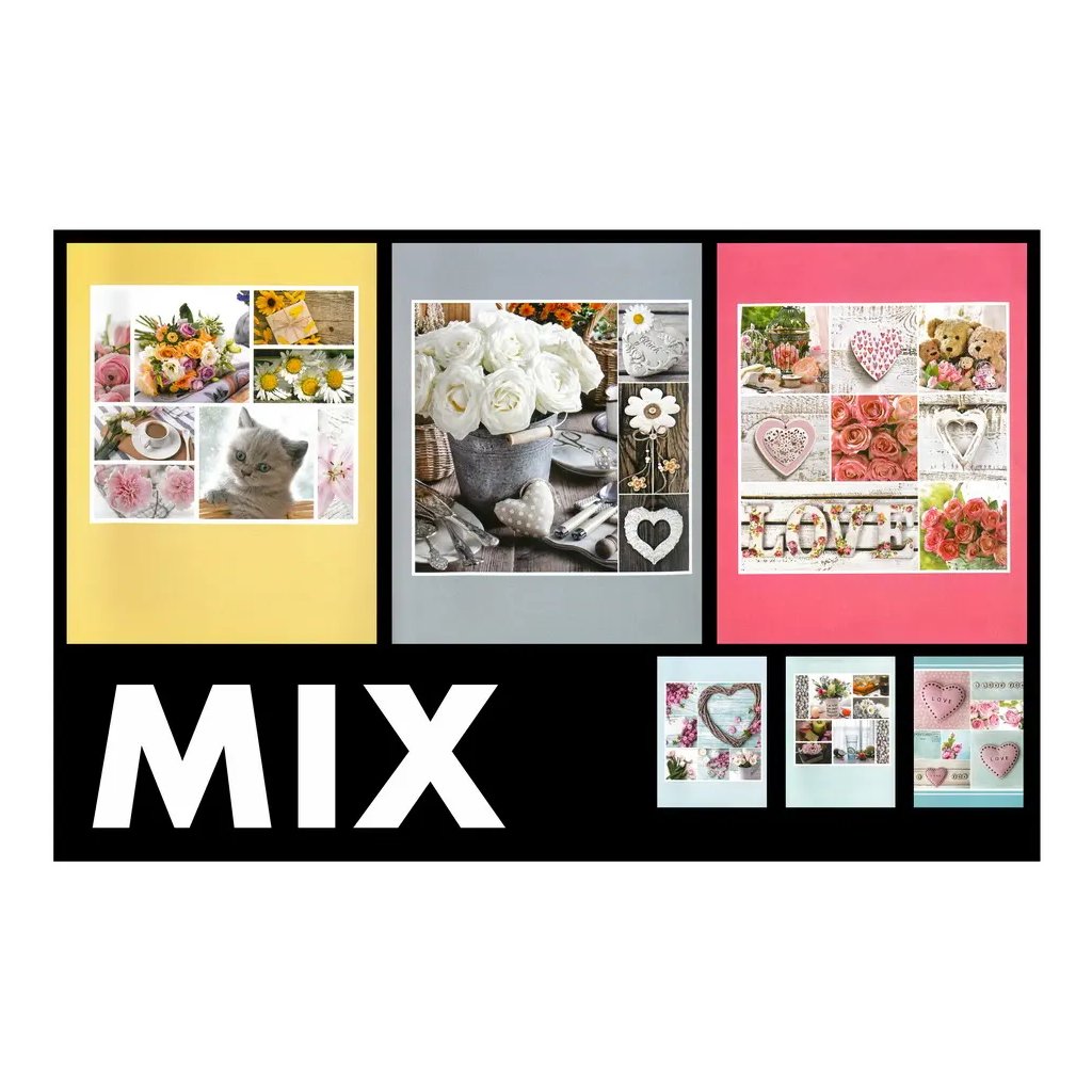 Uchovejte si své vzpomínky v tomto praktickém mixu šesti fotoalb, kde si každý najde to své. Plastové desky s různými motivy, včetně květinových, s obrázky kočiček, mořských motivů, krajin či zamilovaných motivů srdíček a medvídků, a svařovaná vazba zaručují odolnost a dlouhou životnost. Album pojme až 36 fotografií ve formátu 9 x 13 cm, které se vkládají do průhledných kapes (jedna na stranu). Fotografie jsou tak bezpečně chráněny a připraveny k rychlému prohlížení. Tento mix je skvělý pro uspořádání menších sérií fotografií z výjimečných událostí a představuje skvělý dárek pro každého. V měkkých deskách můžete vyměnit obálkové karty a přizpůsobit si tak album ještě víc dle vlastní fantazie. Cena je uvedena za 1 kus alba. Pokud Vám záleží na konkrétním motivu (např. barva květin/rámečku), specifikujte jej, prosím, co nejpřesněji v poznámce k objednávce.Doplňkové parametry