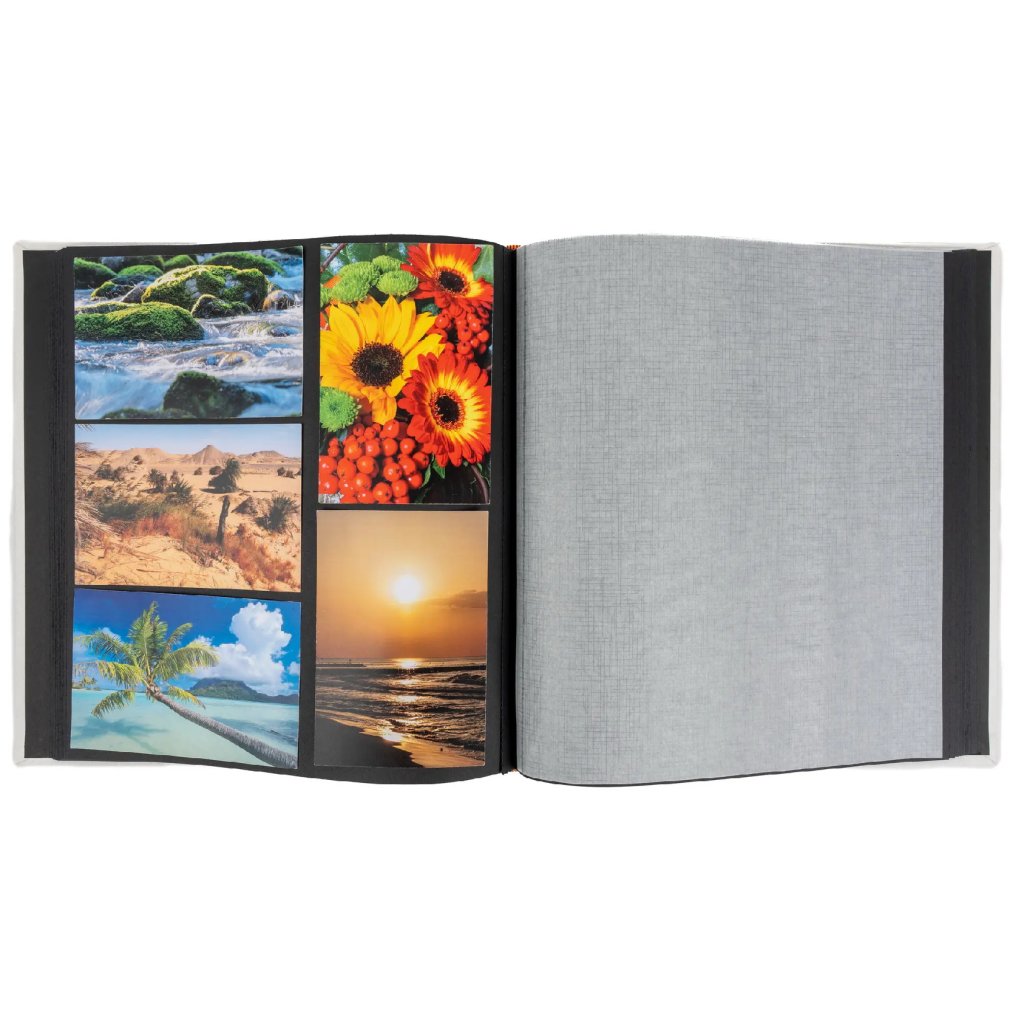 Uchovejte si vzpomínky na ty nejkrásnější okamžiky vaší svatby v tomto elegantním klasickém fotoalbu. Pevné desky z imitace kůže v bílé barvě a šitá vazba zaručují odolnost a dlouhou životnost. Album s decentním motivem má navíc praktické okénko pro vložení vlastní fotografie. Album obsahuje 60 černých stran, na které je možné vkládat fotografie libovolného formátu pomocí fotorůžků nebo lepidla. Na černé listy je možné psát popisky bílým či stříbrným popisovačem, takže zachytíte nejen obrazy, ale i příběhy a emoce. Mezi jednotlivými stranami jsou jemné pergamenové listy, které chrání fotografie před slepením.Doplňkové parametry