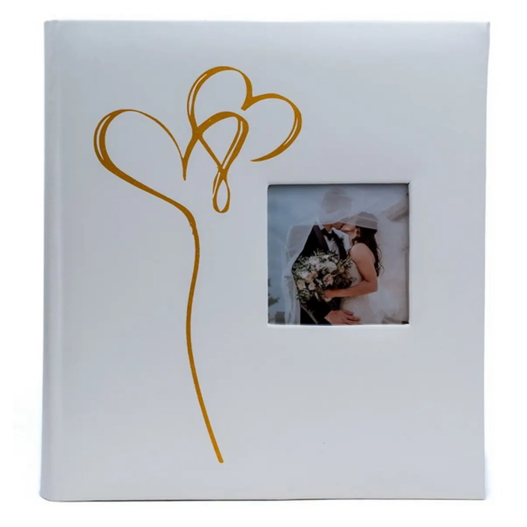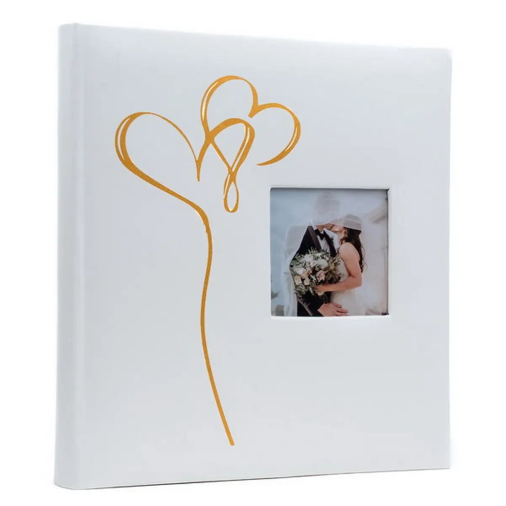 Uchovejte si vzpomínky na ten nejkrásnější den v životě v tomto elegantním svatebním fotoalbu. Pevné desky z imitace kůže v bílé barvě a šitá vazba zaručují odolnost a dlouhou životnost. Obal alba zdobí motiv zlatých srdcí a navíc má praktické okénko pro vložení vlastní fotografie. Album obsahuje 60 stran, na které je možné vkládat fotografie libovolného formátu pomocí fotorůžků nebo lepidla. Vedle fotek je navíc možnost dopsat vlastní popisky. Mezi jednotlivými stranami jsou jemné pergamenové listy, které chrání fotografie před slepením.Doplňkové parametry