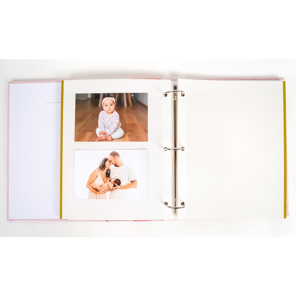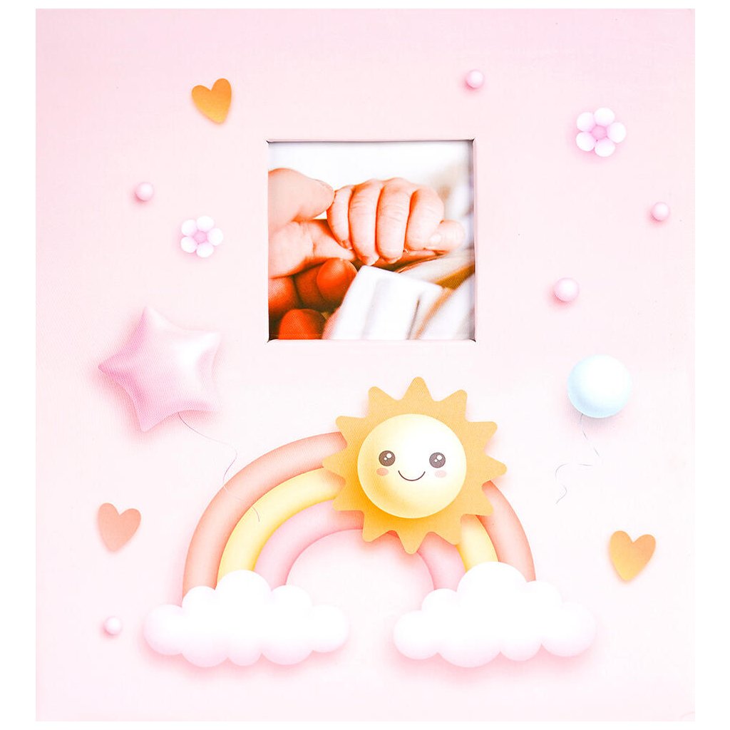 Uchovejte si vzpomínky na první roky života vašeho miminka v tomto krásném fotoalbu. Pevné desky z laminovaného papíru v růžovém provedení a kroužková vazba zaručují odolnost a dlouhou životnost. Obal alba zdobí veselý motiv sluníčka, duhy a hvězdiček. Navíc má praktické okénko, do kterého lze vložit vlastní fotografii. Album obsahuje 100 samolepicích stran, na které je možné vkládat fotografie libovolného formátu.Doplňkové parametry
