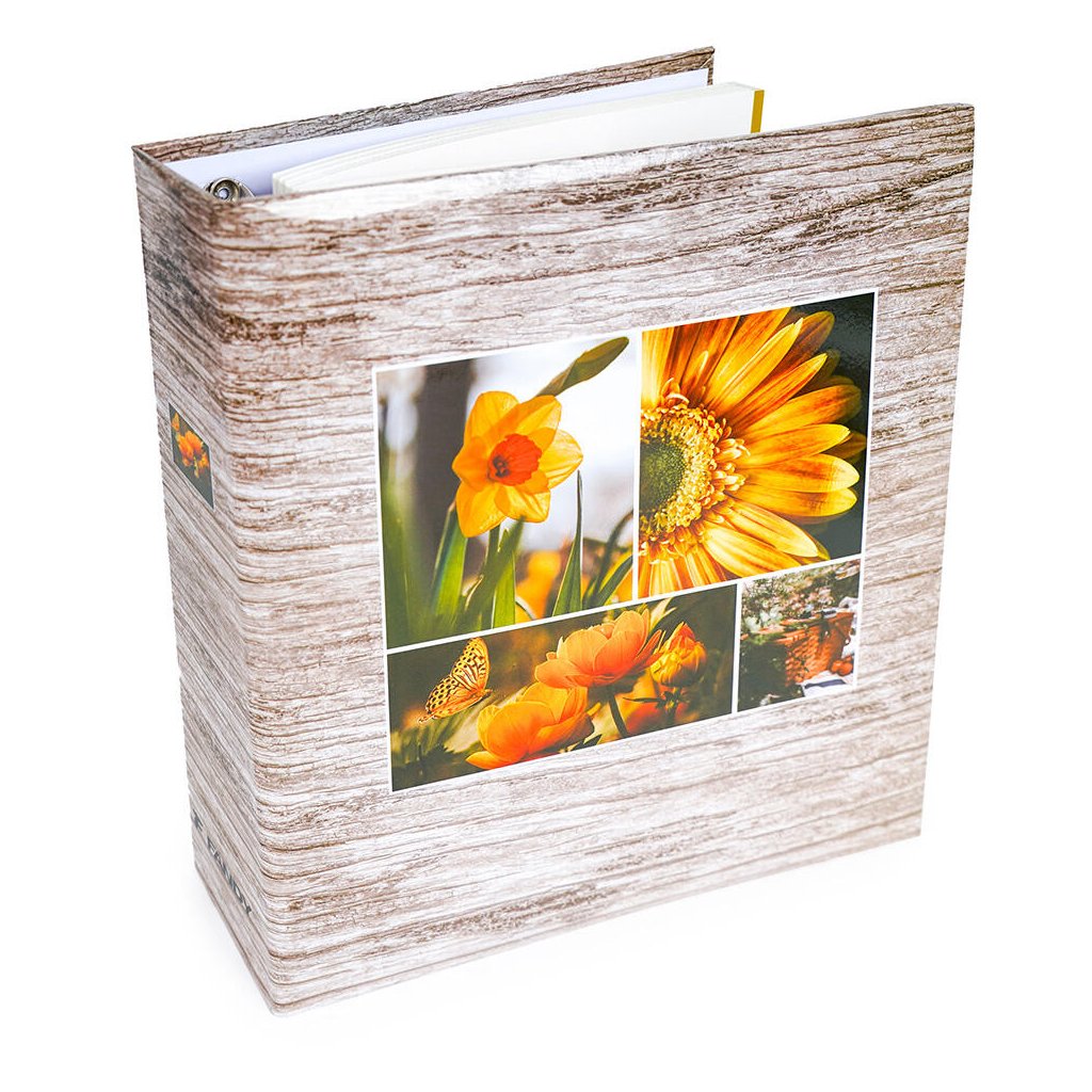 Uchovejte si vzpomínky na vaše nejdůležitější okamžiky v tomto originálním fotoalbu. Pevné desky z laminovaného papíru a kroužková vazba zaručují odolnost a dlouhou životnost. Obal alba zdobí imitace světlého dřeva s koláží fotografií květin. Album obsahuje 100 samolepicích stran, na které je možné vkládat fotografie libovolného formátu.Doplňkové parametry