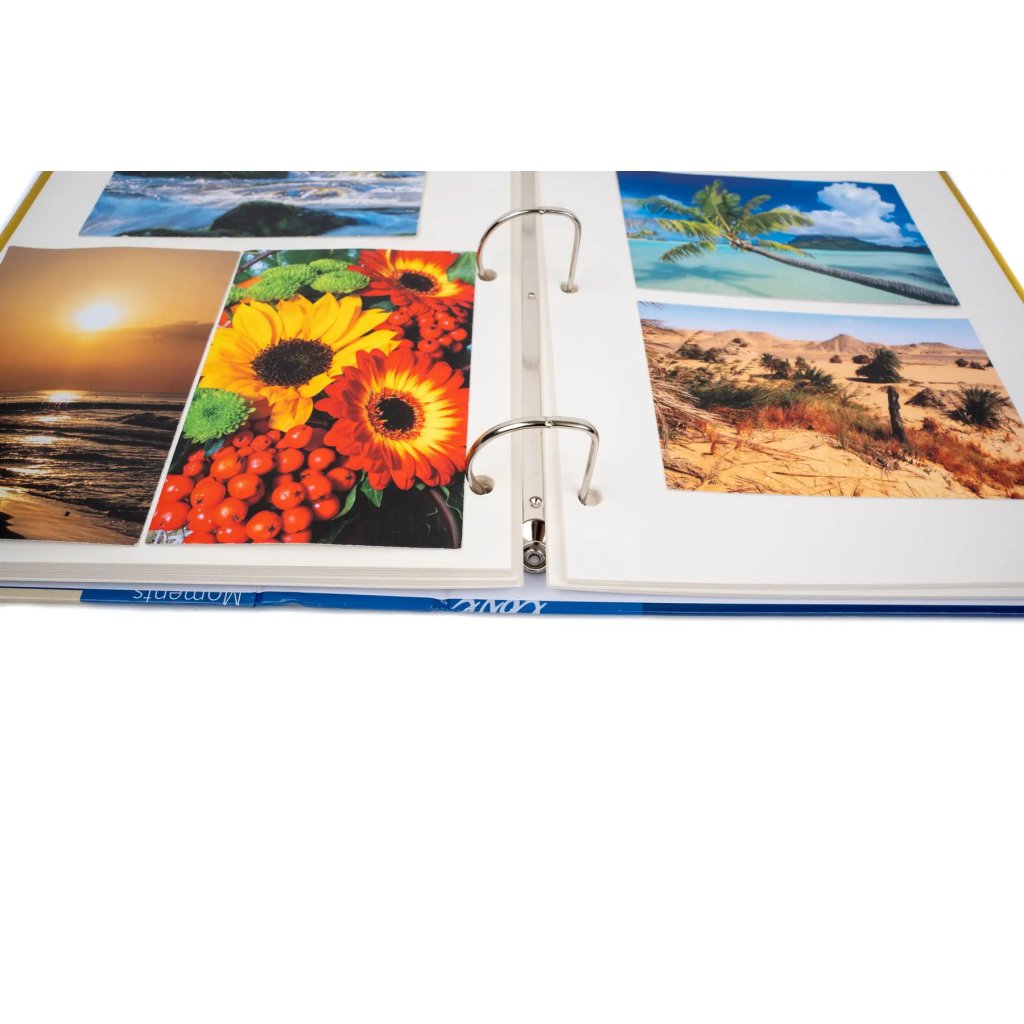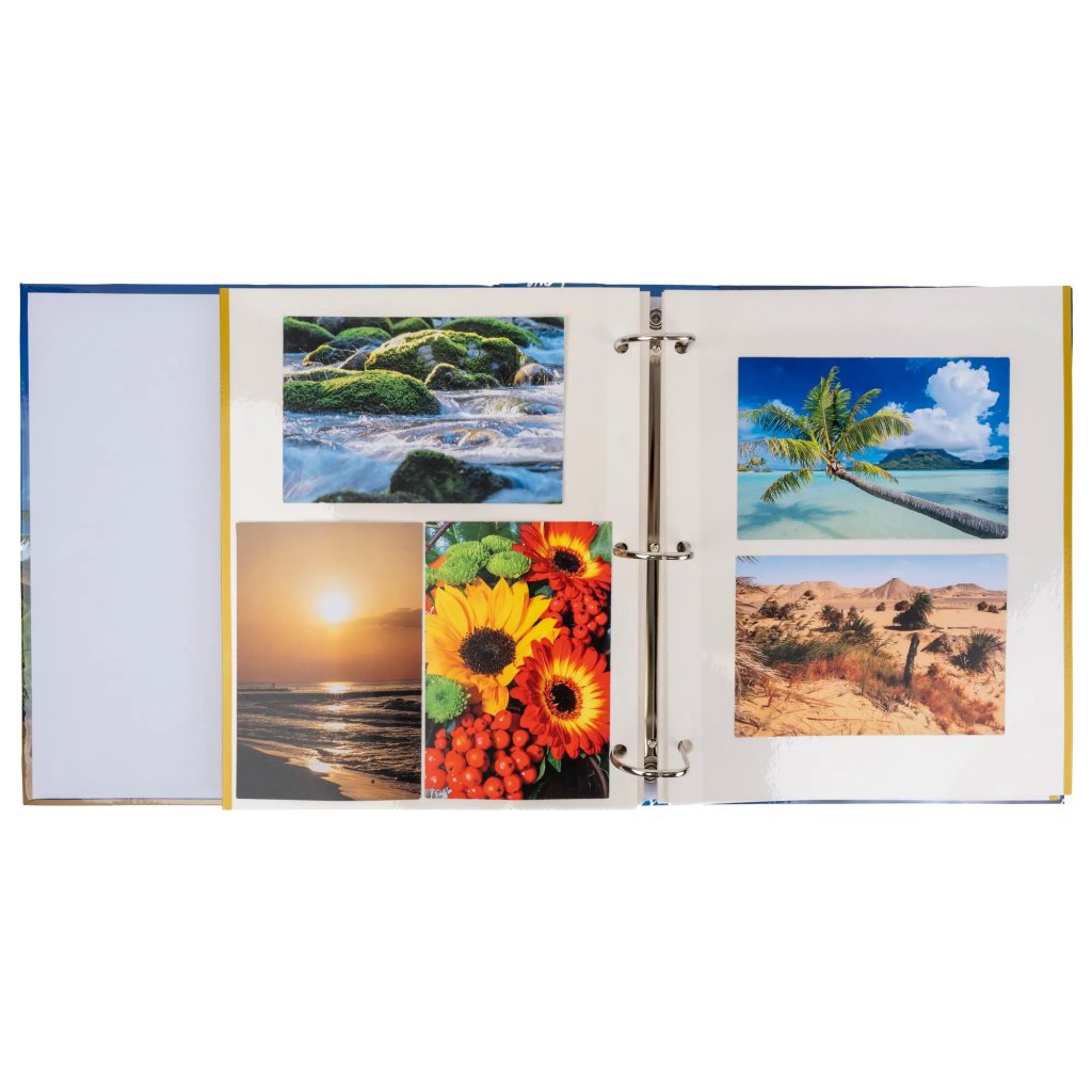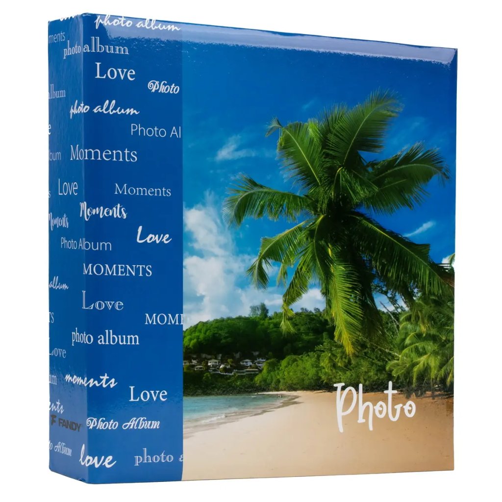 Uchovejte si vzpomínky na vaše nejdůležitější okamžiky v tomto originálním fotoalbu. Pevné desky z laminovaného papíru v modrém provedení a kroužková vazba zaručují odolnost a dlouhou životnost. Obal alba zdobí fotografie pláže s palmami a nápisy jako "Photo" nebo "Moments". Album obsahuje 100 samolepicích stran, na které je možné vkládat fotografie libovolného formátu.Doplňkové parametry