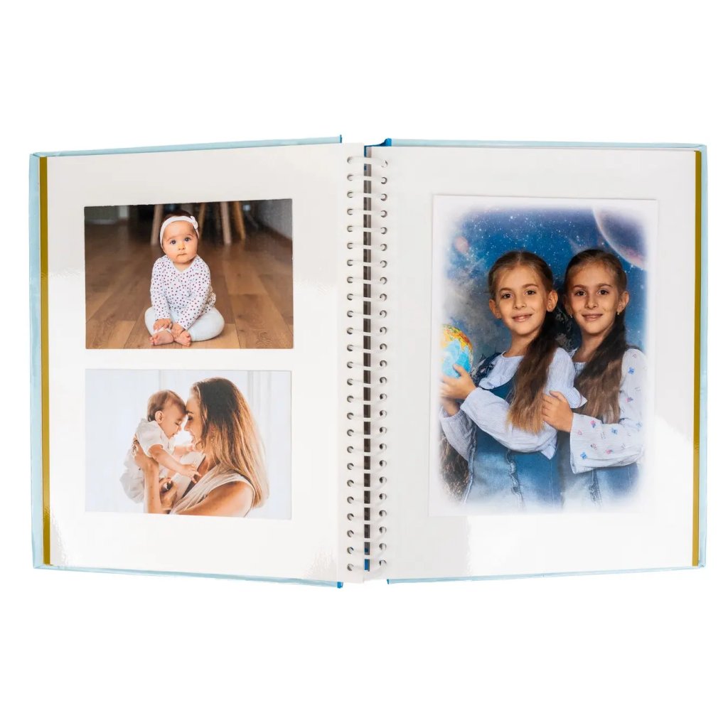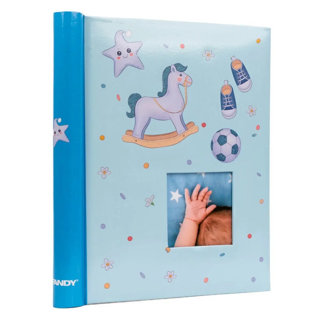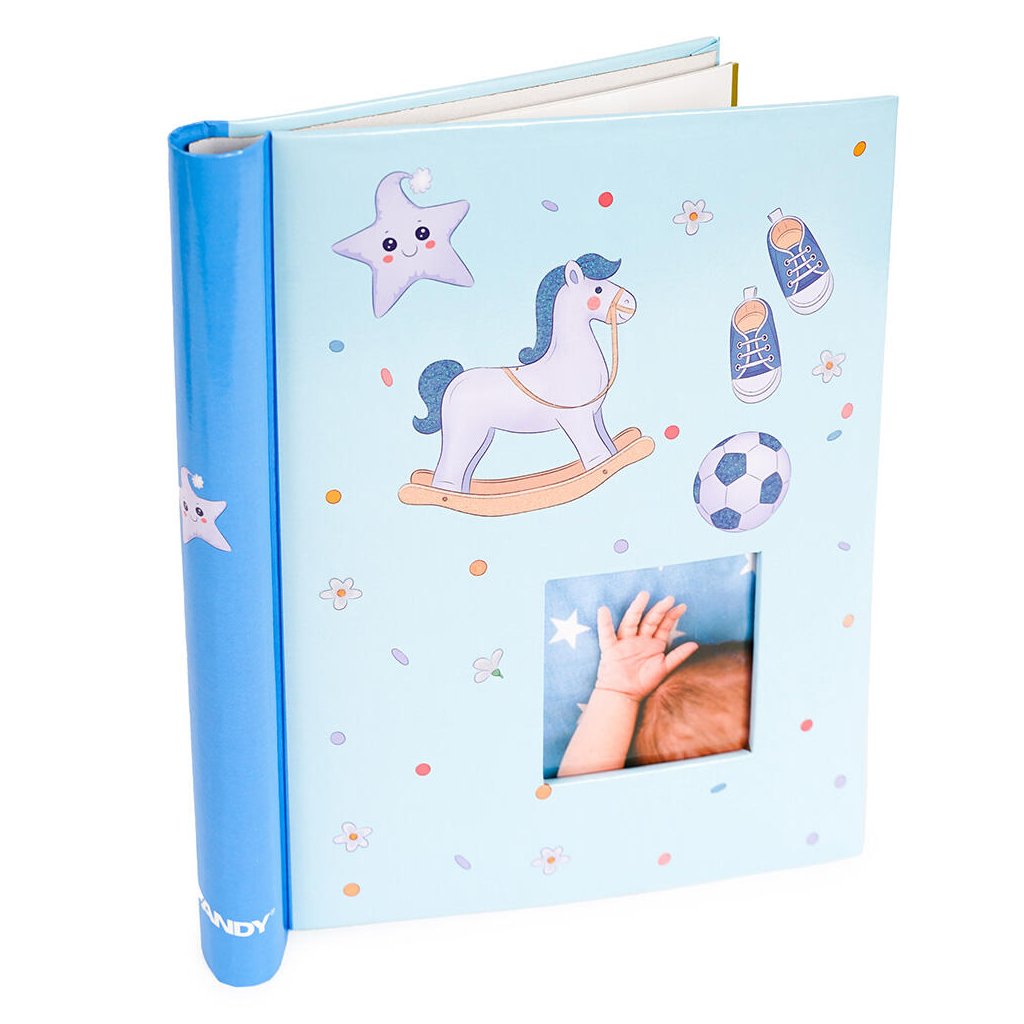 Uchovejte si vzpomínky na první roky života vašeho miminka v tomto krásném fotoalbu. Pevné desky z laminovaného papíru v modrém provedení a spirálová vazba zaručují odolnost a dlouhou životnost. Obal alba zdobí veselé dětské motivy a navíc má praktické okénko, do kterého lze vložit vlastní fotografii. Album obsahuje 20 samolepicích stran, na které je možné vkládat fotografie libovolného formátu.Doplňkové parametry