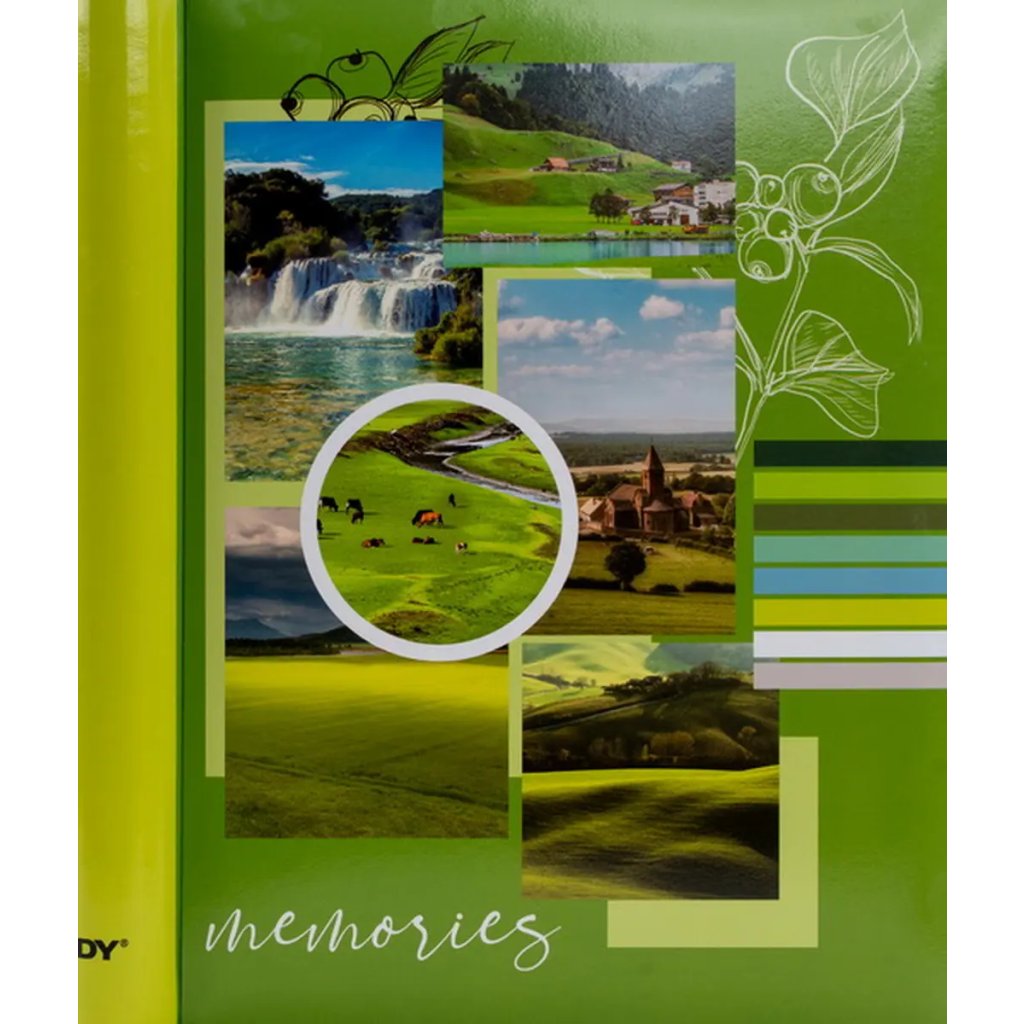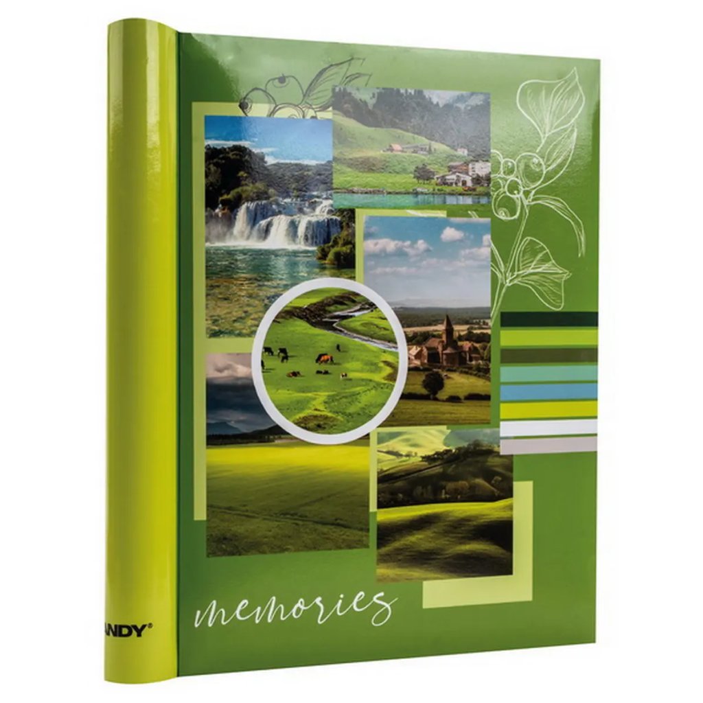 Jedná se o samolepicí fotoalbum s laminovanou obálkou v zelené barvě. Album má spirálovou vazbu, která umožňuje jeho jednoduché otáčení a rozevření do roviny. Je určeno pro 20 stran (10 listů) a je ideální pro různé formáty fotografií (maximální velikost fotografie 22,5 x 28 cm), které se lepí na bílé listy. Na obálce je vyobrazena koláž fotografií s tématy přírody a cestování s ozdobným nápisem "memories". Díky svému veselému a neutrálnímu motivu je album ideální pro uchování vzpomínek z cest, přírody nebo jiných cenných zážitků.Doplňkové parametry