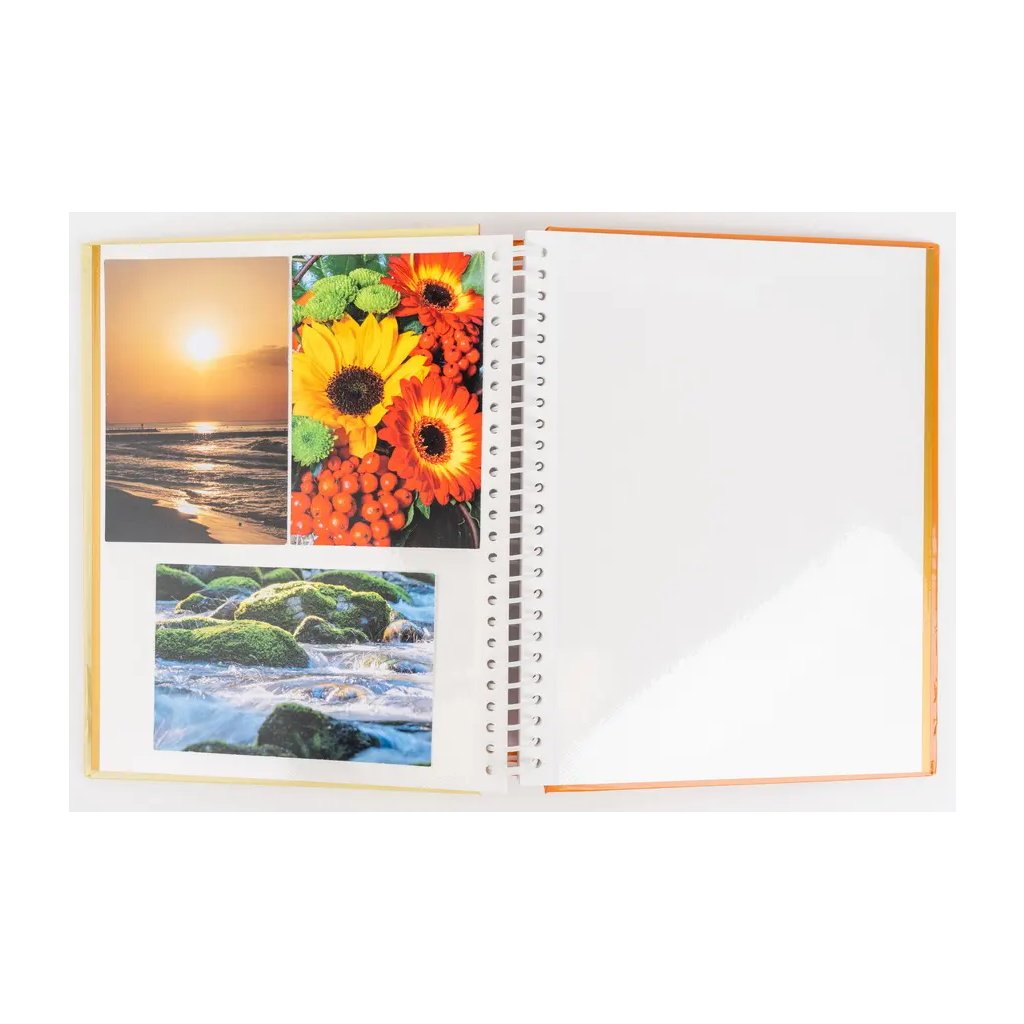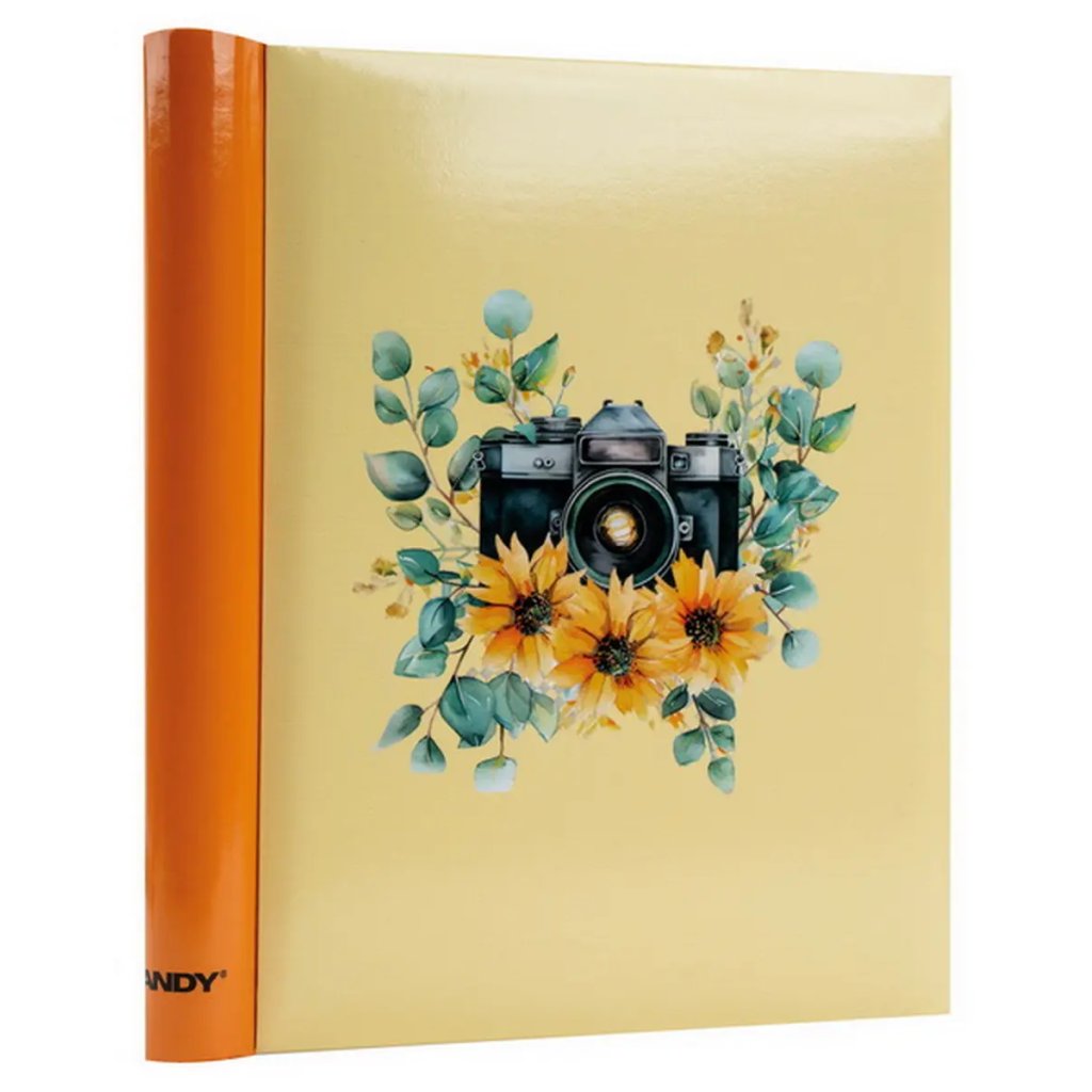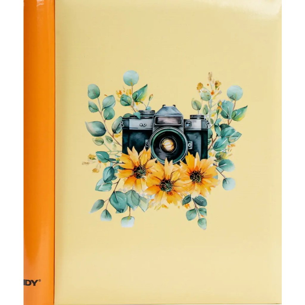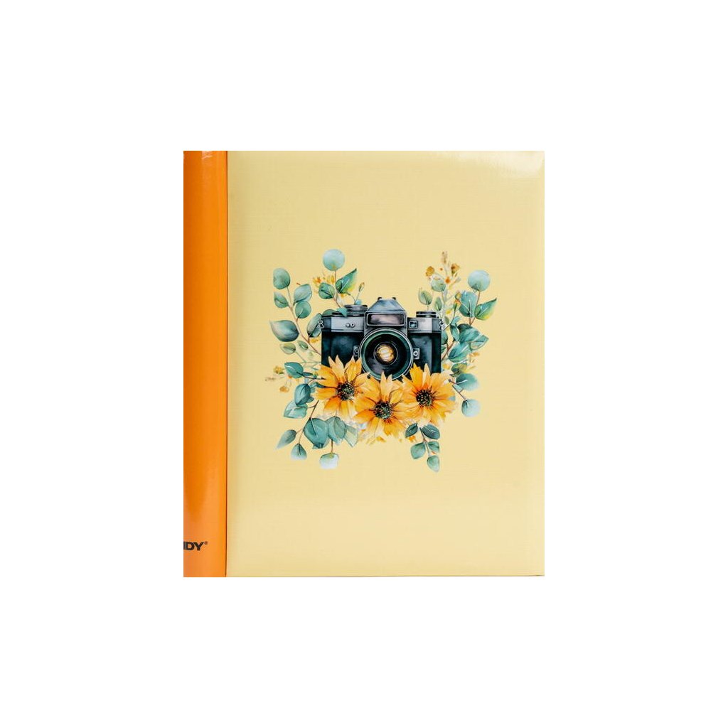 Jedná se o samolepicí fotoalbum s laminovanou obálkou v žluté barvě. Album má spirálovou vazbu, která umožňuje jeho jednoduché otáčení a rozevření do roviny. Je určeno pro 40 stran (20 listů) a je ideální pro různé formáty fotografií (maximální velikost fotografie 22,5 x 28 cm), které se lepí na bílé/béžové listy. Na obálce je vyobrazen retro motiv s detailní ilustrací starého fotoaparátu, obklopeného jemnými akvarelovými květy. Díky tomuto neutrálnímu a stylovému motivu je album ideální pro uchování vzpomínek z cest, přírody nebo jiných cenných zážitků.Doplňkové parametry