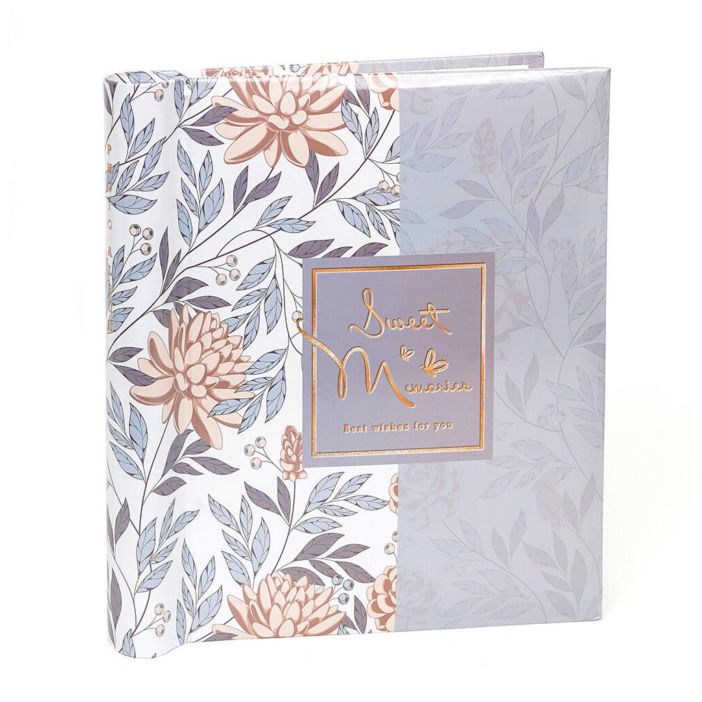 Uchováte své nejsladší vzpomínky v tomto jemném albu s květinově-botanickým designem. Elegantní vzor s fialovými květy a šedými listy v kombinaci se zlatým nápisem "Sweet Memories" vytváří romantickou a nostalgickou atmosféru. Laminovaná obálka zajišťuje odolnost a spirálová vazba umožňuje jednoduché listování. Album nabízí 60 samolepicích stran pro rychlé vkládání fotografií. Ideální pro rodinné vzpomínky, svatební alba nebo jako citlivý dárek.Doplňkové parametry