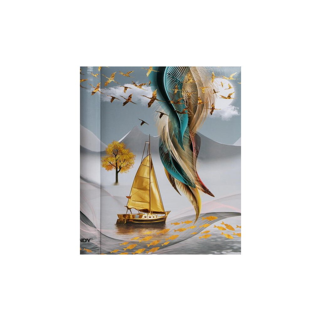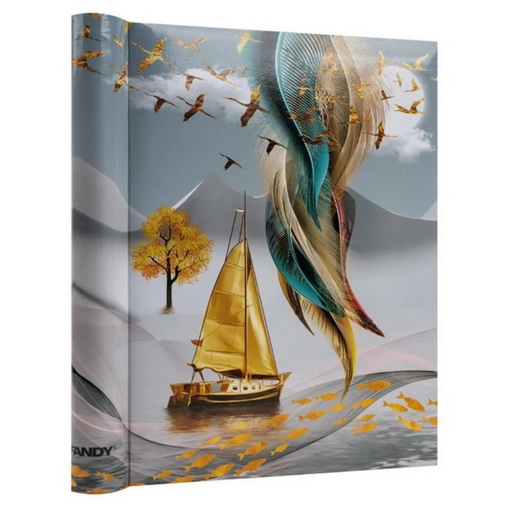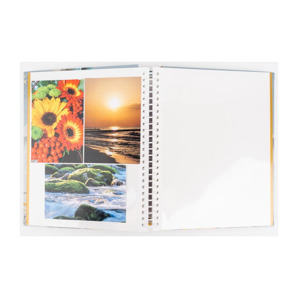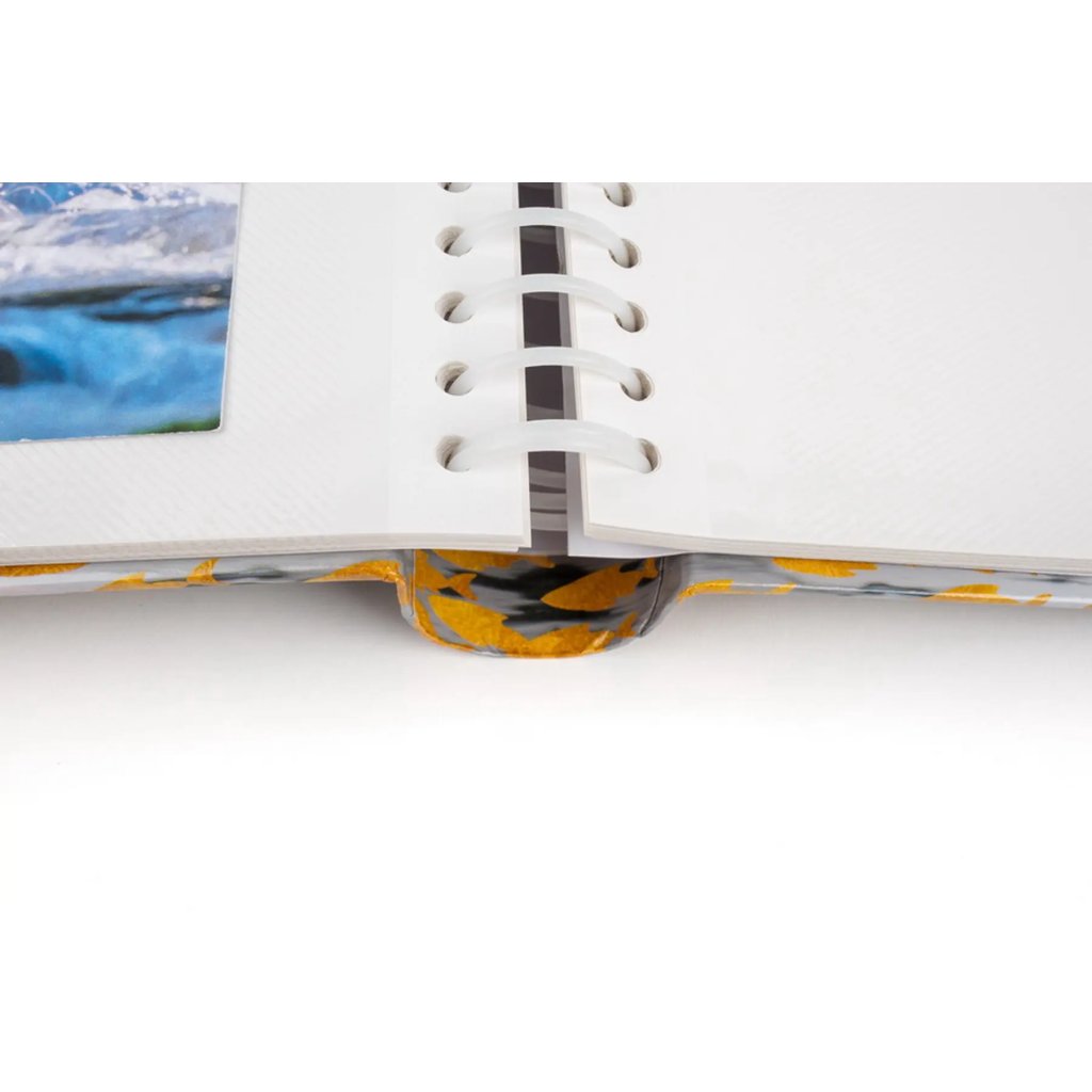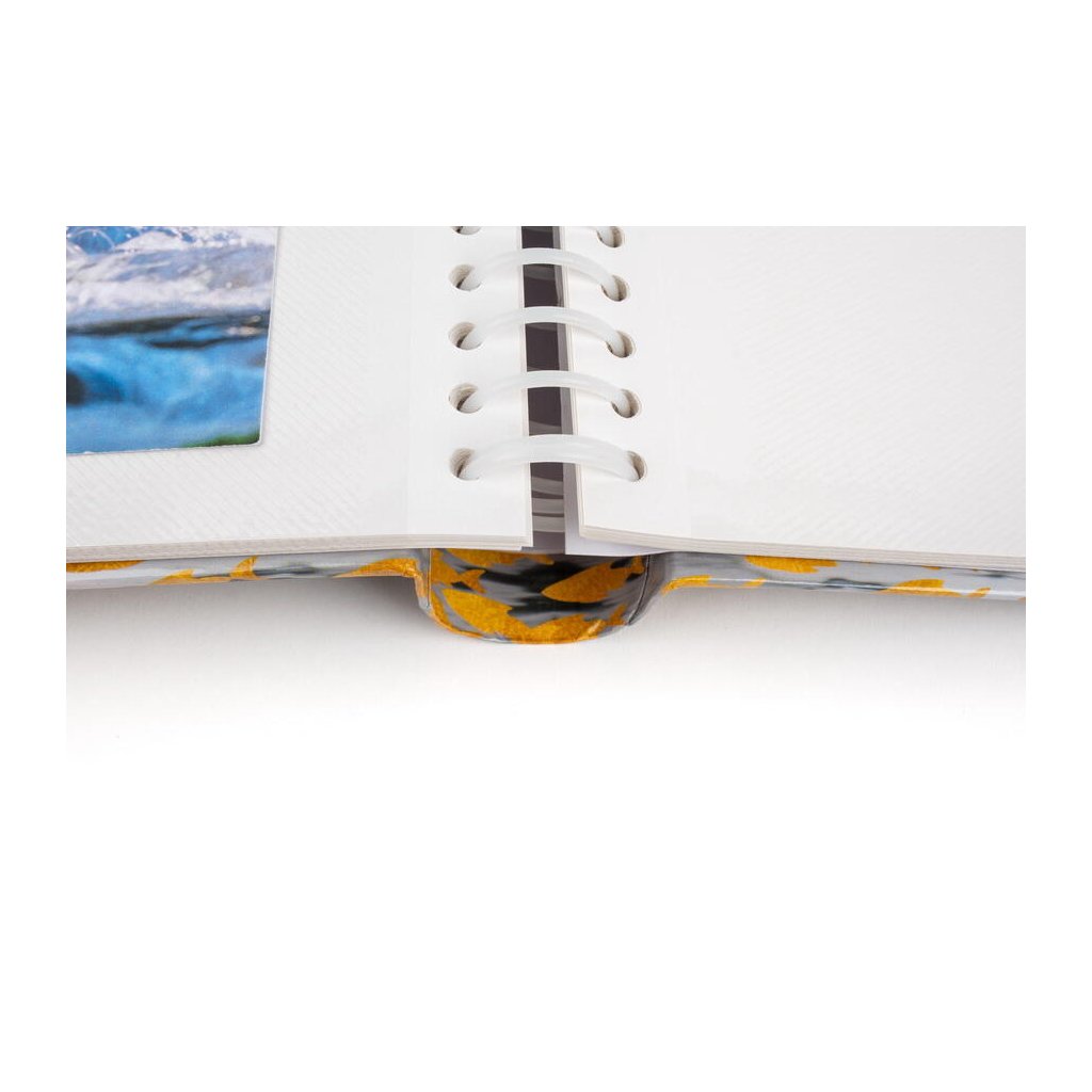 Jedná se o samolepicí fotoalbum s laminovanou obálkou v šedomodrých tónech se zlatými akcenty. Album má spirálovou vazbu, která umožňuje jeho jednoduché otáčení a rozevření do roviny. Je určeno pro 60 stran (30 listů) a je ideální pro různé formáty fotografií (maximální velikost fotografie 22,5 x 28 cm), které se lepí na bílé listy. Na obálce je vyobrazen moderní, abstraktní motiv s fantastickými přírodními prvky. Díky svému elegantnímu a neutrálnímu designu je album ideální pro uchování vzpomínek z cest, svateb nebo jiných cenných zážitků.Doplňkové parametry