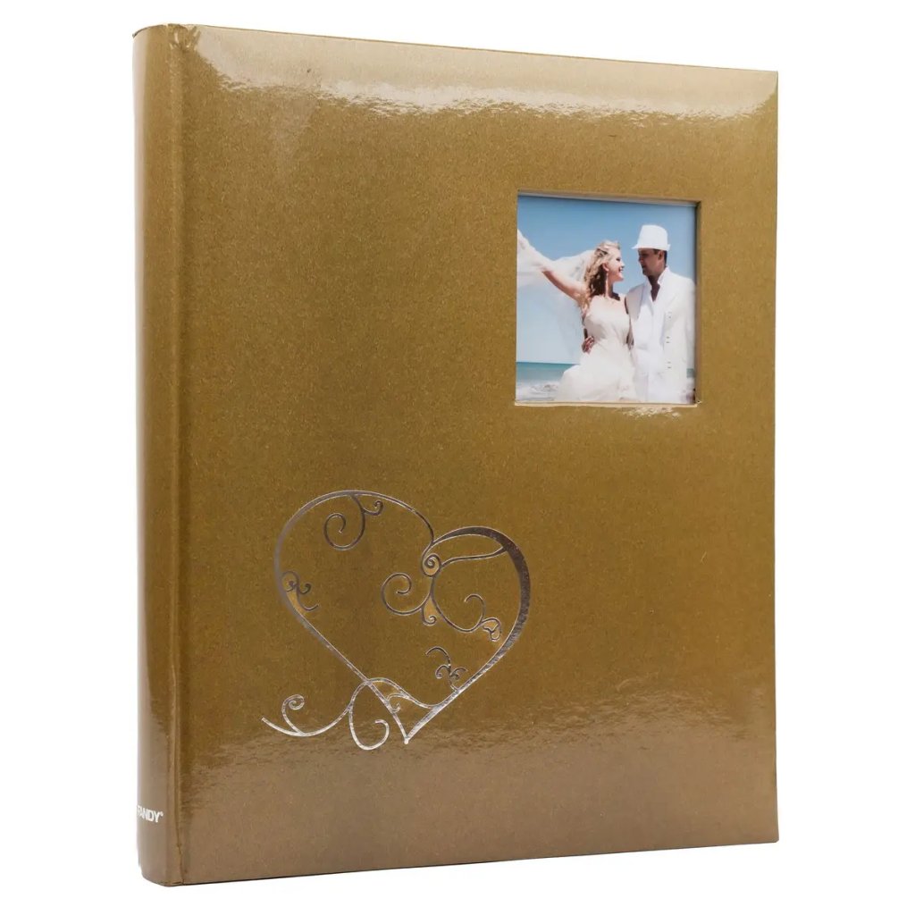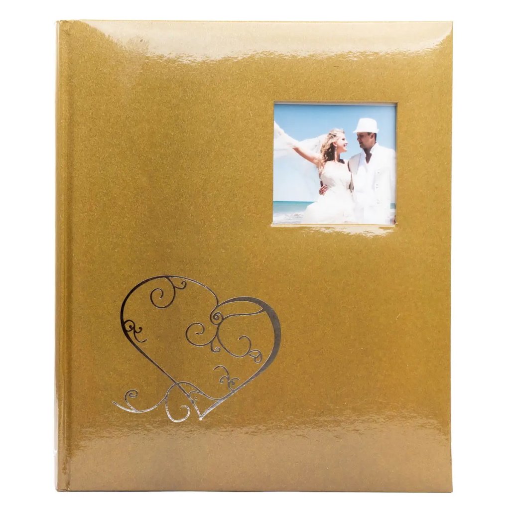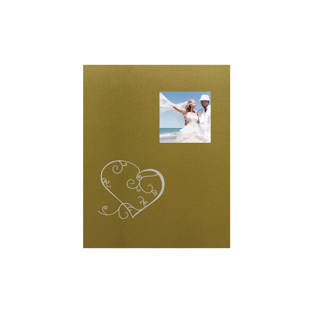 Uchovejte si vzpomínky na váš svatební den v tomto elegantním fotoalbu. Pevné desky z laminovaného papíru a šitá vazba zaručují odolnost a dlouhou životnost. Obal alba zdobí motiv srdce a navíc má praktické okénko, do kterého lze vložit vlastní fotografii. Album obsahuje 40 samolepicích stran, na které je možné vkládat fotografie libovolného formátu.Doplňkové parametry