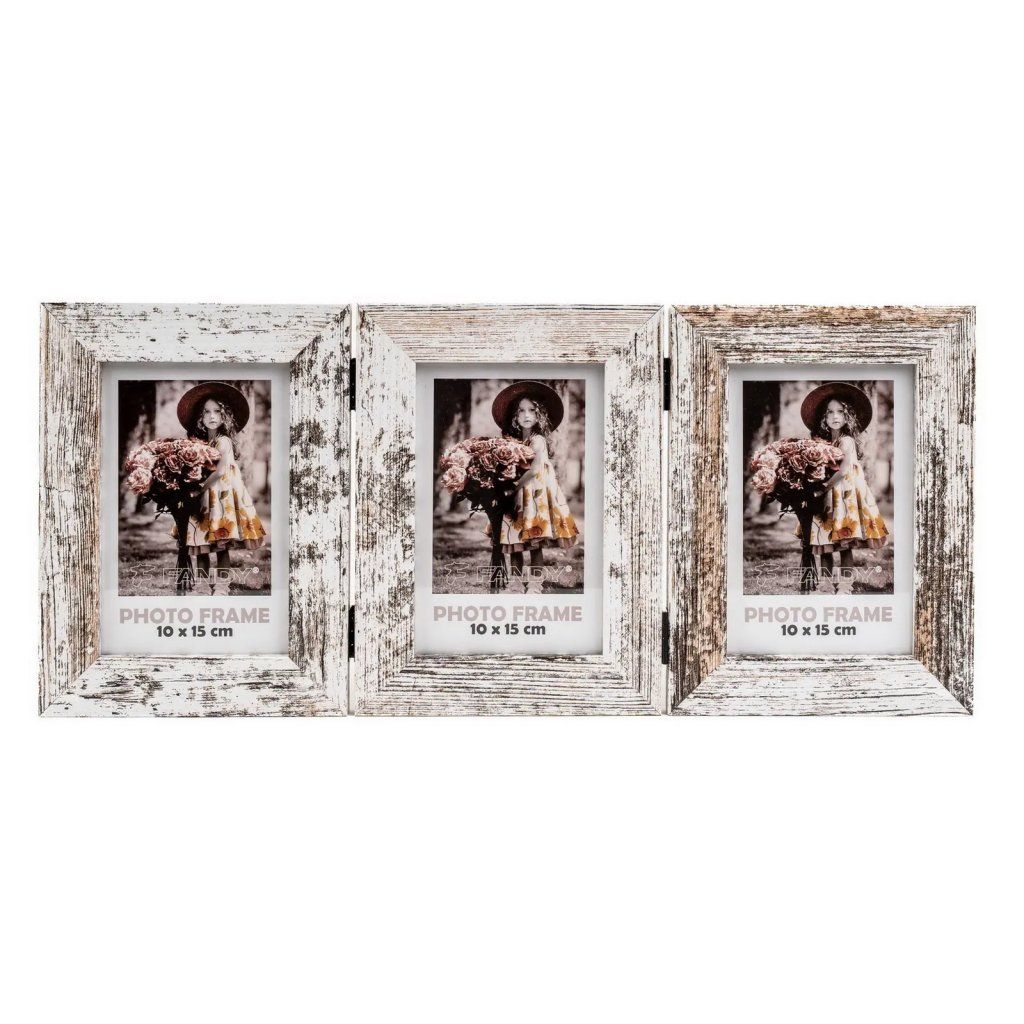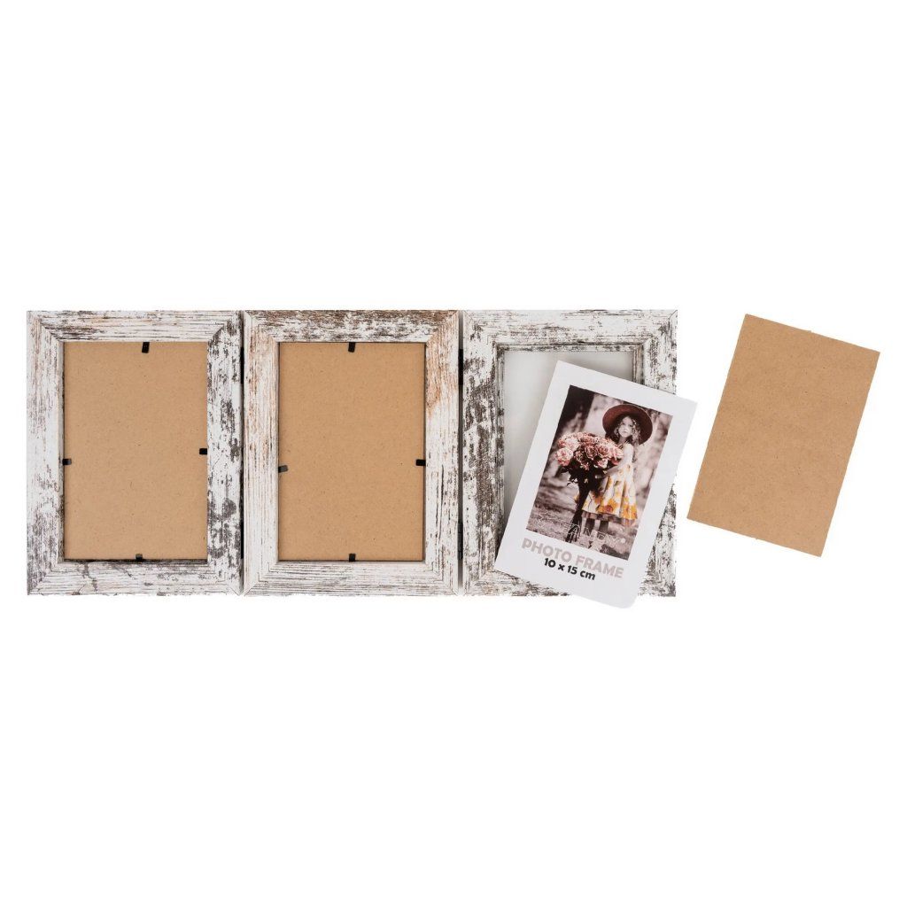 Vzpomínejte na své nejkrásnější okamžiky s tímto fotorámečkem Narvik v dekoru dřeva. Trojitý bílý MDF rámeček s melírem ve vintage stylu je ideální na tři fotografie o rozměrech 10 x 15 cm ve vertikálním postavení. Celý rámeček má rozměr 54 x 22,5 cm, přičemž šířka lišty je 2,8 cm. Rámeček je určen k postavení na komodu, poličku nebo noční stolek. Fotografie jsou chráněny sklem a do rámečku se vkládají jednoduše ze zadní strany.Doplňkové parametry