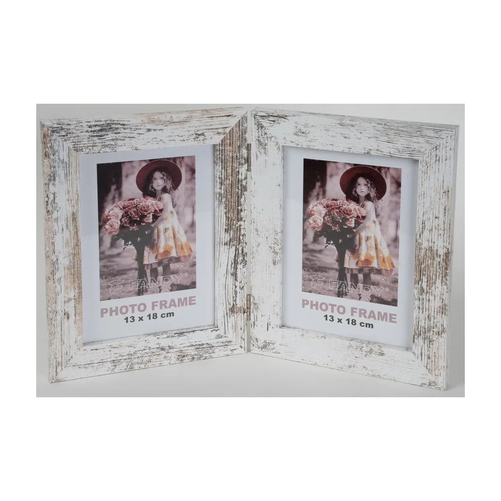 Vzpomínejte na své nejkrásnější okamžiky s tímto fotorámečkem Narvik v dekoru dřeva. Dvojitý bílý MDF rámeček s melírem ve vintage stylu je ideální na dvě fotografie o rozměrech 13 x 18 cm ve vertikálním postavení. Celý rámeček má rozměr 35,5 x 22,5 cm, přičemž šířka lišty je 2,8 cm. Rámeček je určen k postavení na komodu, poličku nebo noční stolek. Fotografie jsou chráněny sklem a do rámečku se vkládají jednoduše ze zadní strany.Doplňkové parametry
