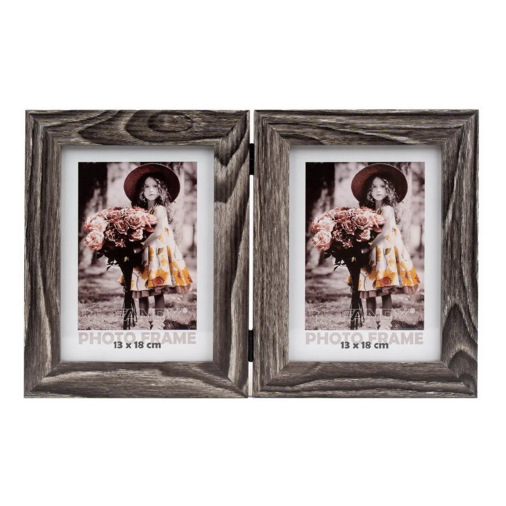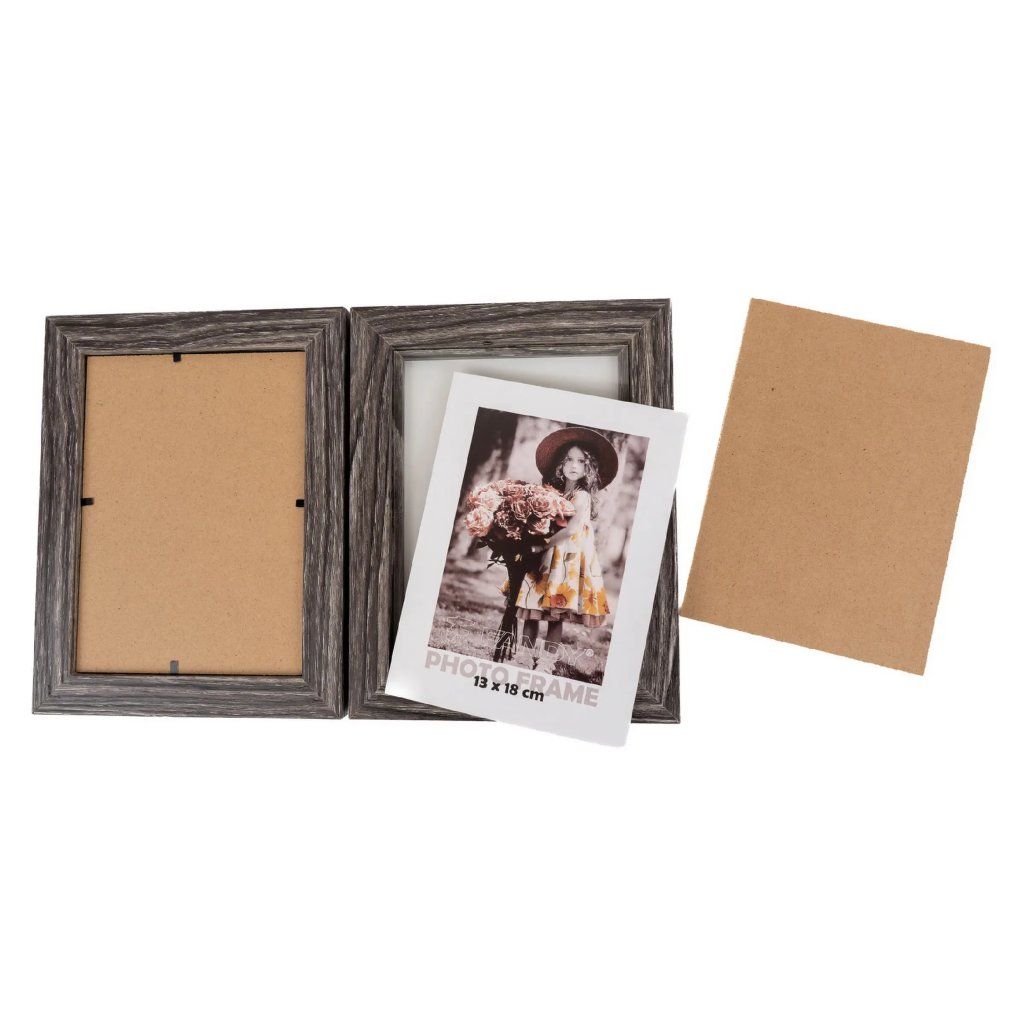 Vzpomínejte na své nejkrásnější okamžiky s tímto fotorámečkem Narvik v dekoru dřeva. Dvojitý šedo-hnědý MDF rámeček ve vintage stylu je ideální na dvě fotografie o rozměrech 13 x 18 cm ve vertikálním postavení. Celý rámeček má rozměr 35,5 x 22,5 cm, přičemž šířka lišty je 2,8 cm. Rámeček je určen k postavení na komodu, poličku nebo noční stolek. Fotografie jsou chráněny sklem a do rámečku se vkládají jednoduše ze zadní strany.Doplňkové parametry