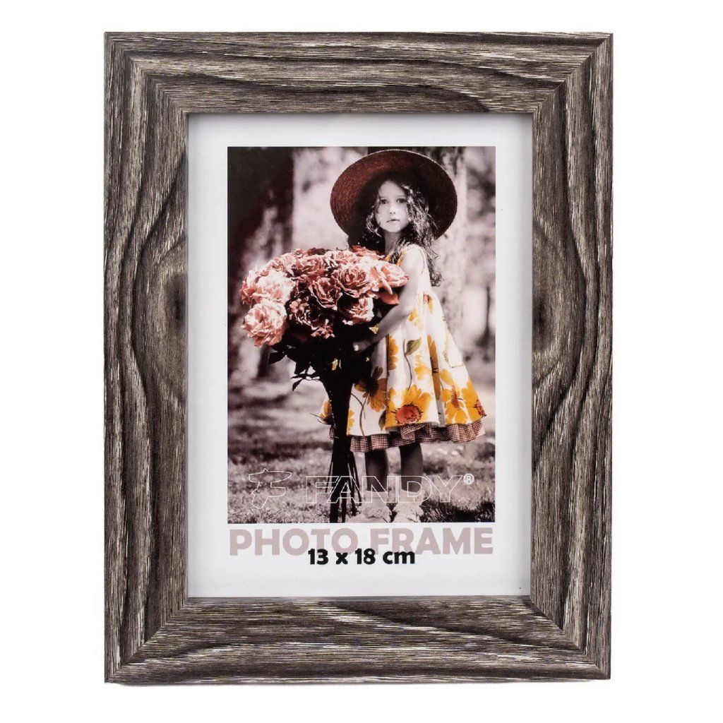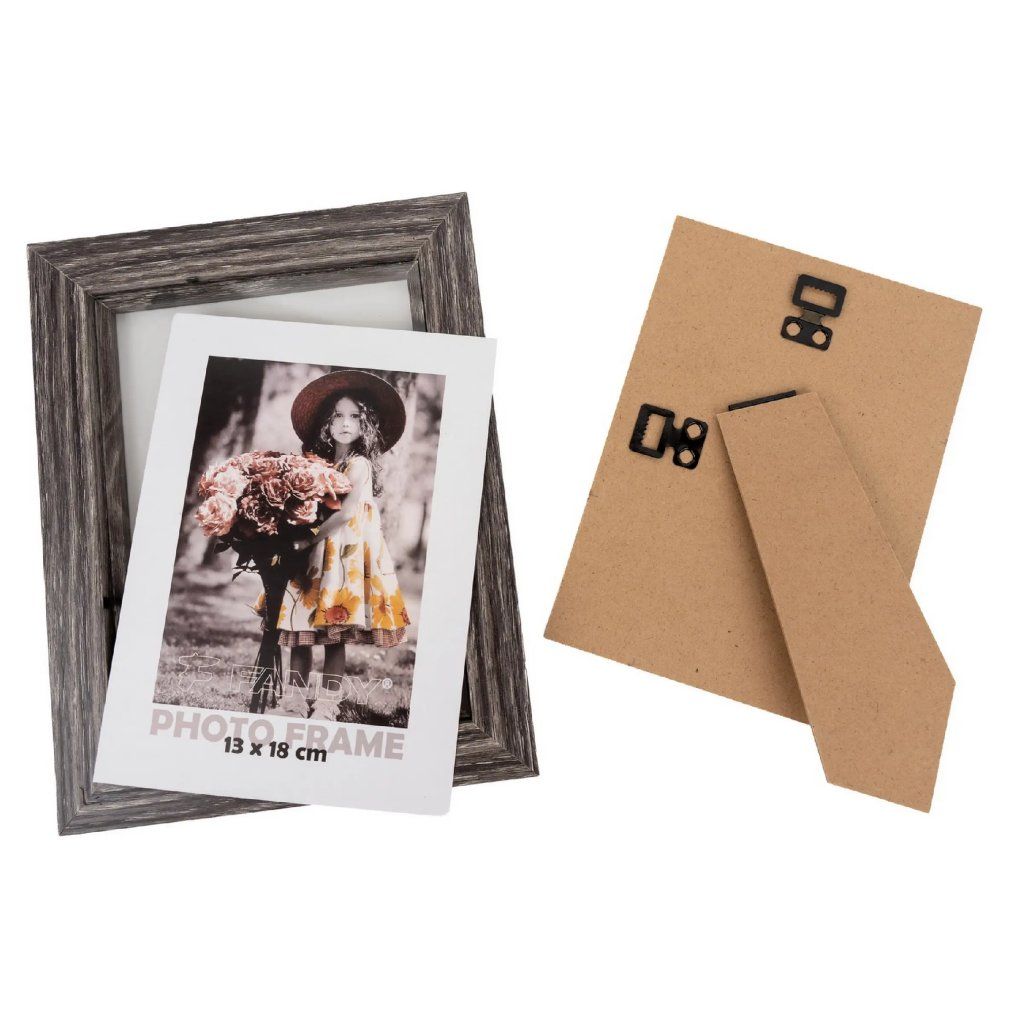 Vzpomínejte na své nejkrásnější okamžiky s tímto elegantním fotorámečkem Narvik z MDF v šedo-hnědém provedení s dekorem dřeva. Rámeček má jednoduchý, ale nadčasový design, který se hodí do každého interiéru. Je ideální na fotografii o rozměrech 13 x 18 cm. Celý rámeček má rozměr 17,5 x 22,5 cm, přičemž šířka lišty je 2,8 cm. Rámeček lze postavit na komodu, poličku nebo noční stolek, a také ho můžete zavěsit na zeď, a to jak horizontálně, tak i vertikálně. Fotografie je chráněna sklem a jednoduše se vkládá ze zadní strany.Doplňkové parametry