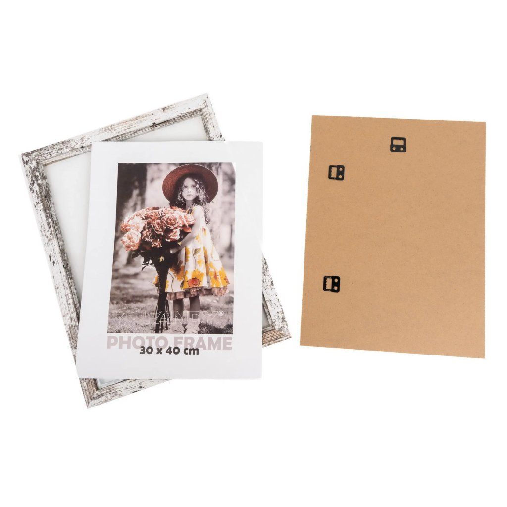 Vzpomínejte na své nejkrásnější okamžiky s tímto elegantním fotorámečkem Narvik z MDF v bílém provedení s vintage dekorem dřeva. Rámeček má jednoduchý, ale nadčasový design, který se hodí do každého interiéru. Je ideální na fotografii o rozměrech 15 x 21 cm. Celý rámeček má rozměr 34,5 x 44,5 cm, přičemž šířka lišty je 2,8 cm. Rámeček lze postavit na komodu, poličku nebo noční stolek, a také ho můžete zavěsit na zeď, a to jak horizontálně, tak i vertikálně. Fotografie je chráněna sklem a jednoduše se vkládá ze zadní strany.Doplňkové parametry