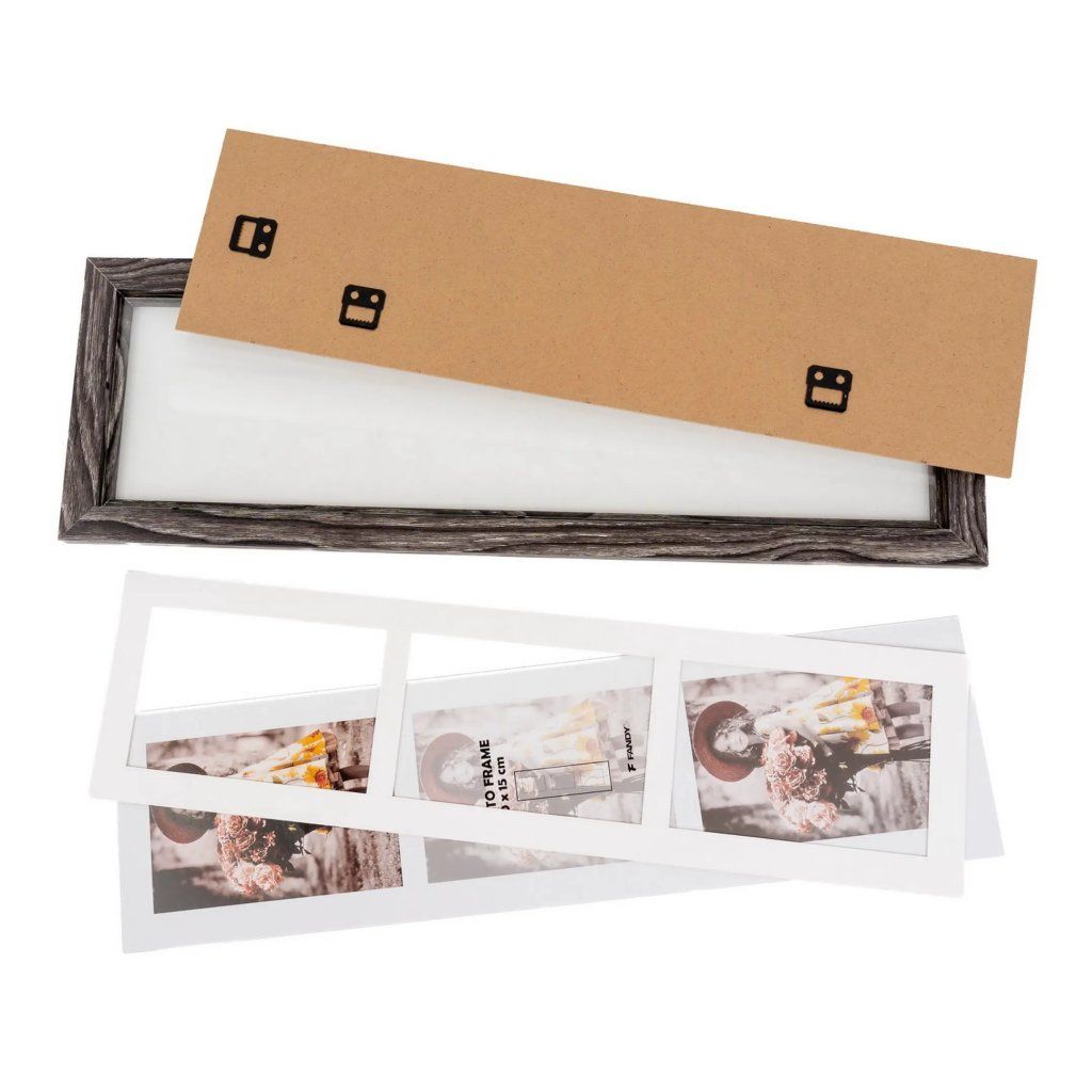 Vzpomínejte na své nejkrásnější okamžiky s tímto fotorámečkem Narvik Gallery v dekoru dřeva. Šedo-hnědý MDF rámeček ve vintage stylu je ideální na tři fotografie o rozměrech 10 x 15 cm. Celý rámeček má rozměr 18,5 x 56,5 cm, přičemž šířka lišty je 2,8 cm. Rámeček je určen k zavěšení na zeď vertikálně i horizontálně. Fotografie jsou chráněny sklem a do rámečku se vkládají jednoduše ze zadní strany.Doplňkové parametry