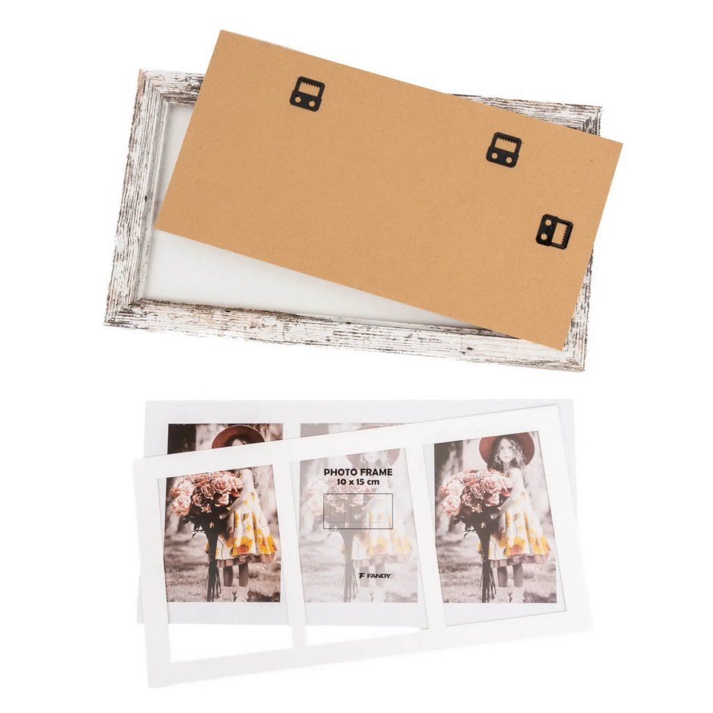 Vzpomínejte na své nejkrásnější okamžiky s tímto fotorámečkem Narvik Gallery v dekoru dřeva. Bílý MDF rámeček s melírem ve vintage stylu je ideální na tři fotografie o rozměrech 10 x 15 cm. Bez pasparty je do rámečku možné vložit jednu fotografii o rozměrech 18,5 x 36,5 cm. Celý rámeček má rozměr 41,5 x 23,5 cm, přičemž šířka lišty je 2,8 cm. Rámeček je určen k zavěšení na zeď vertikálně i horizontálně. Fotografie jsou chráněny sklem a do rámečku se vkládají jednoduše ze zadní strany.Doplňkové parametry