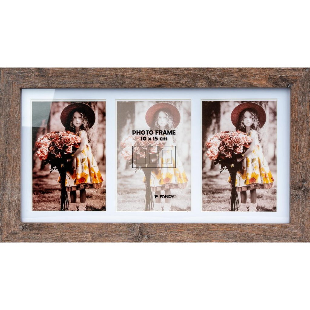 Vzpomínejte na své nejkrásnější okamžiky s tímto fotorámečkem Narvik Gallery v dekoru dřeva. Hnědý MDF rámeček ve vintage stylu je ideální na tři fotografie o rozměrech 10 x 15 cm. Bez pasparty je do rámečku možné vložit jednu fotografii o rozměrech 18,5 x 36,5 cm. Celý rámeček má rozměr 41,5 x 23,5 cm, přičemž šířka lišty je 2,8 cm. Rámeček je určen k zavěšení na zeď vertikálně i horizontálně. Fotografie jsou chráněny sklem a do rámečku se vkládají jednoduše ze zadní strany.Doplňkové parametry