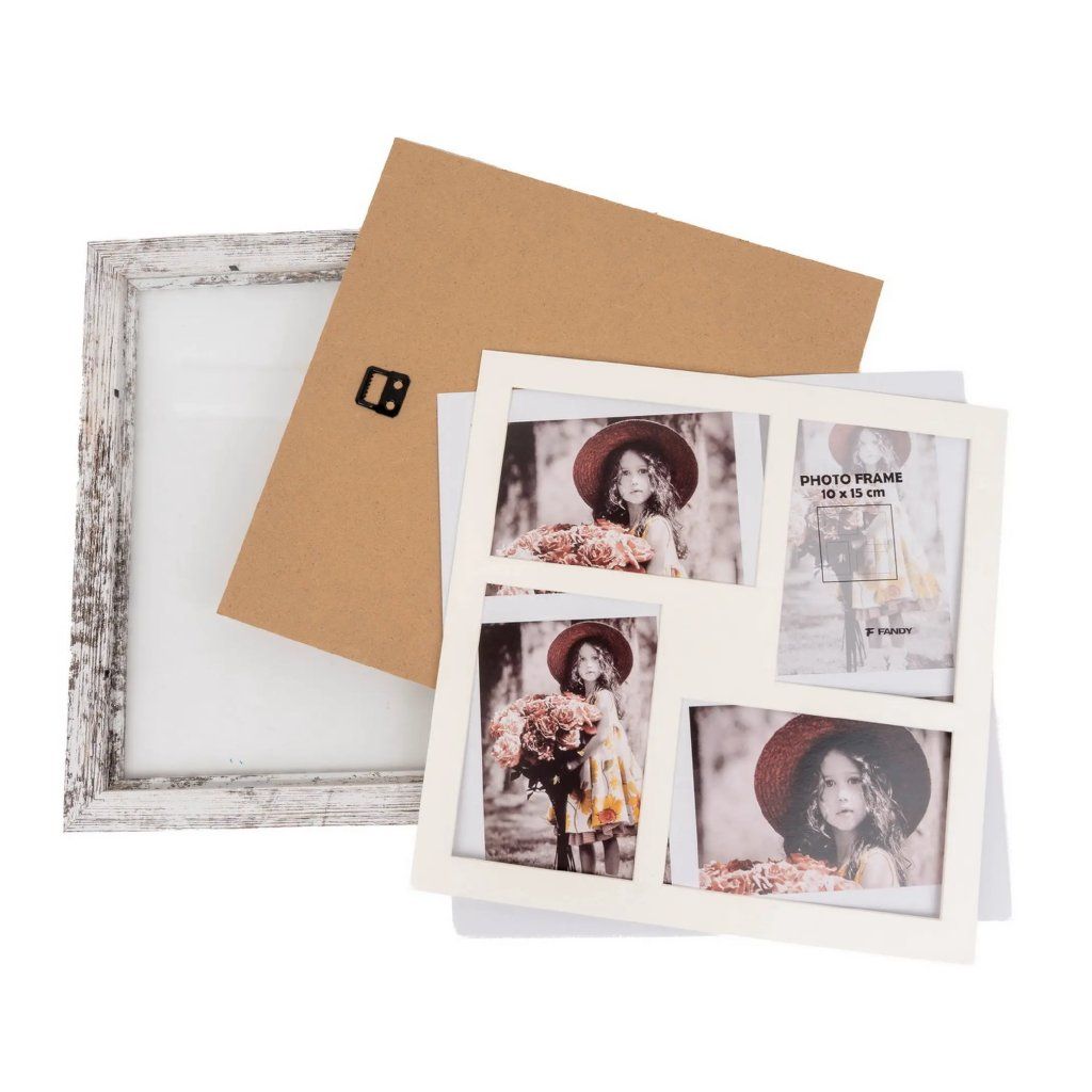 Vzpomínejte na své nejkrásnější okamžiky s tímto fotorámečkem Narvik Gallery v dekoru dřeva. Bílý MDF rámeček s melírem ve vintage stylu je ideální na čtyři fotografie – dvě fotografie o rozměrech 10 x 15 cm a dvě fotografie o rozměrech 15 x 10 cm. Bez pasparty je do rámečku možné vložit jednu fotografii o rozměrech 30 x 30 cm. Celý rámeček má rozměr 35 x 35 cm, přičemž šířka lišty je 2,8 cm. Rámeček je určen k zavěšení na zeď vertikálně. Fotografie jsou chráněny sklem a do rámečku se vkládají jednoduše ze zadní strany.Doplňkové parametry