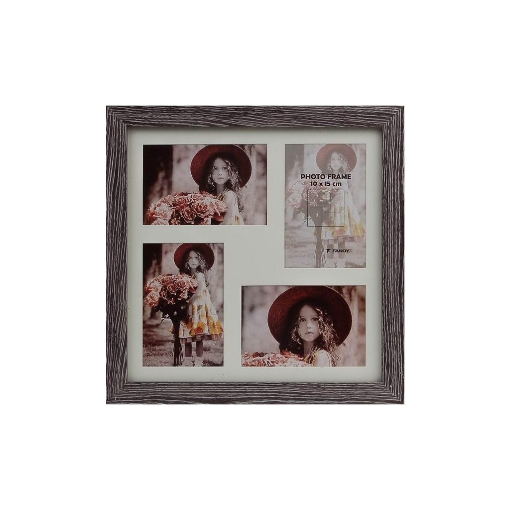 Vzpomínejte na své nejkrásnější okamžiky s tímto fotorámečkem Narvik Gallery v dekoru dřeva. Šedohnědý MDF rámeček ve vintage stylu je ideální na čtyři fotografie – dvě fotografie o rozměrech 10 x 15 cm a dvě fotografie o rozměrech 15 x 10 cm. Bez pasparty je do rámečku možné vložit jednu fotografii o rozměrech 30 x 30 cm. Celý rámeček má rozměr 35 x 35 cm, přičemž šířka lišty je 2,8 cm. Rámeček je určen k zavěšení na zeď vertikálně. Fotografie jsou chráněny sklem a do rámečku se vkládají jednoduše ze zadní strany.Doplňkové parametry