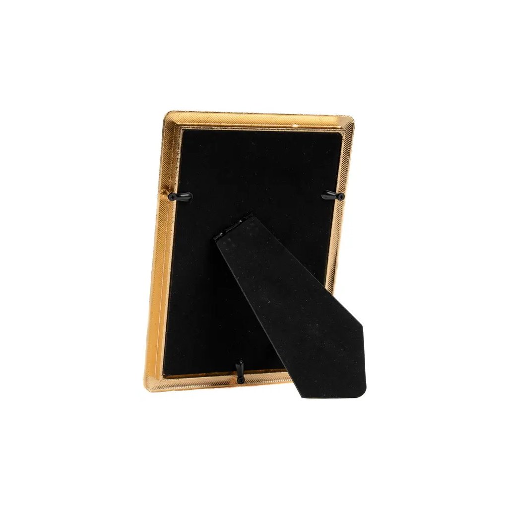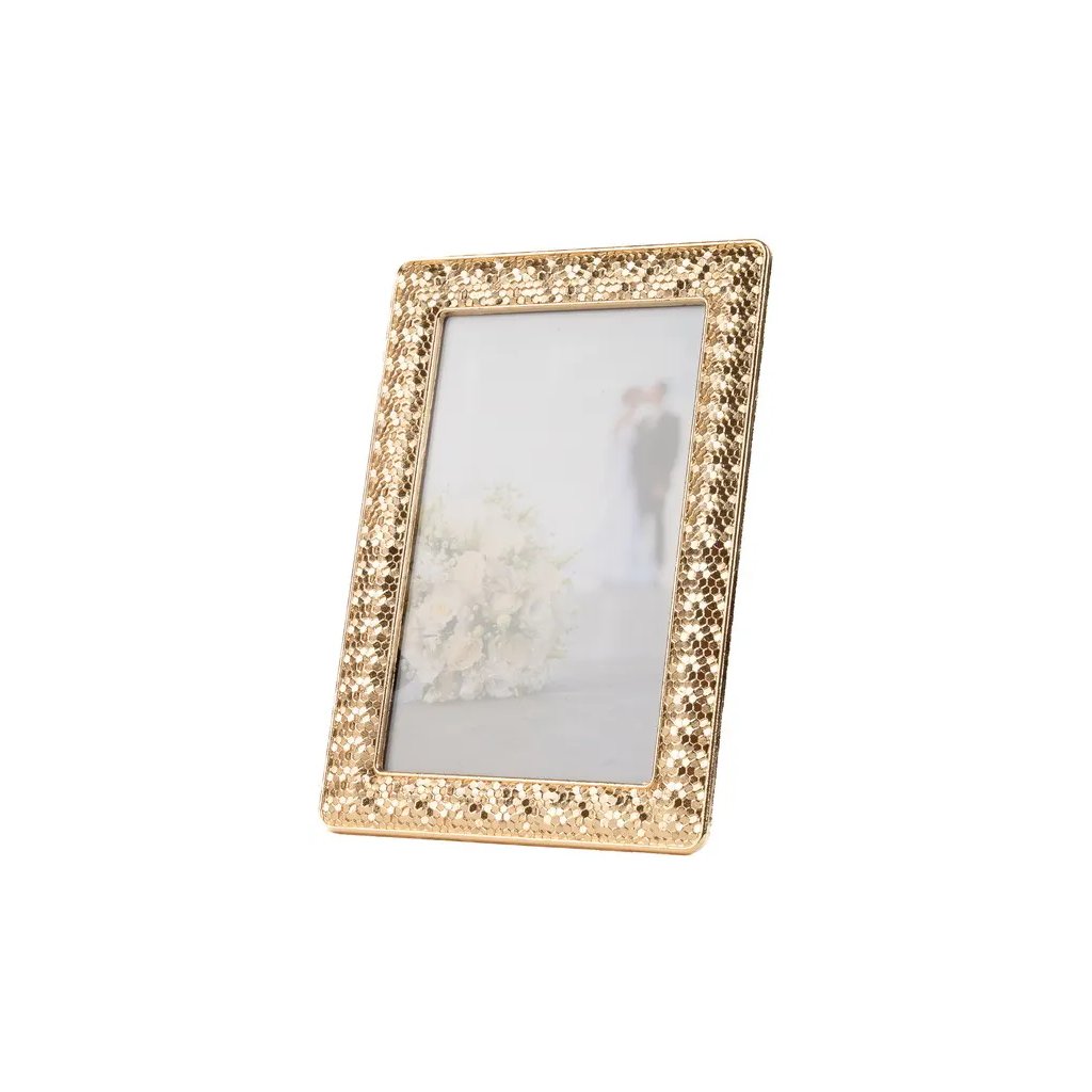 Vzpomínejte na své nejkrásnější okamžiky s tímto elegantním kovovým fotorámečkem Nifty ve zlatém provedení. Celá plocha rámečku je posetá drobnými třpytivými kamínky, které vytvářejí dojem lesklé mozaiky, což mu dodává jedinečný a oslnivý vzhled. Rámeček je ideální na fotografii o rozměrech 13 x 18 cm. Celý rámeček má rozměr 14,5 x 19,5 cm, přičemž šířka lišty je 2 cm. Rámeček lze postavit na komodu, poličku nebo noční stolek, a to jak vertikálně, tak i horizontálně. Fotografie je chráněna sklem a jednoduše se vkládá ze zadní strany.Doplňkové parametry