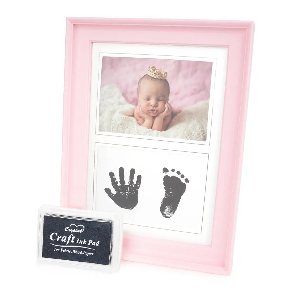 Vzpomínejte na své nejkrásnější okamžiky Vašeho miminka s tímto originálním plastovým fotorámečkem Step v růžovém provedení. Tento rámeček je ideální na otisk ručičky nebo nožičky vašeho dítěte, které je možné vytvořit pomocí inkoustové podušky, která je součástí balení, a na jednu fotografii ????? . Celý rámeček má rozměr 15,5 x 20,6 cm, přičemž šířka lišty je 2 cm. Rámeček lze postavit na komodu, poličku nebo noční stolek, ale také ho můžete zavěsit na zeď. Fotografie je chráněna sklem a jednoduše se vkládá ze zadní strany.Doplňkové parametry