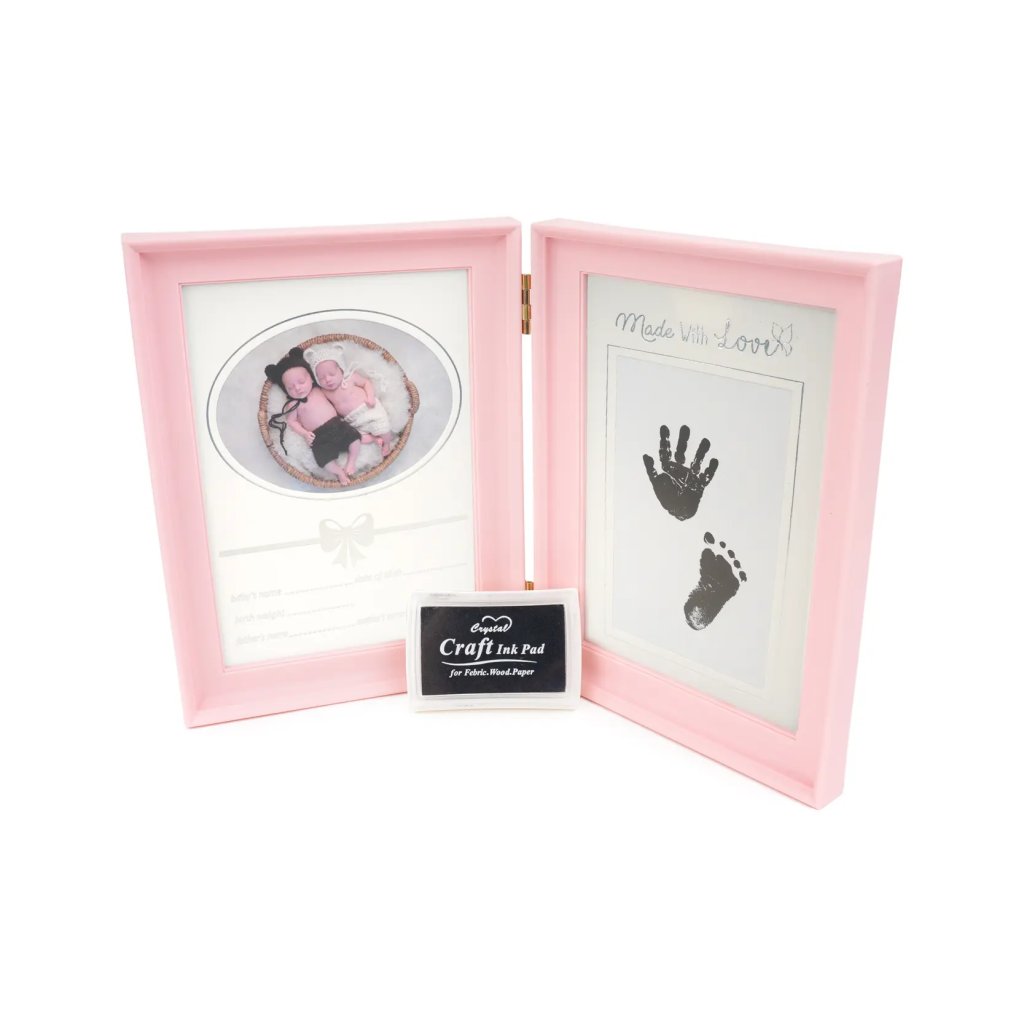Vzpomínejte na své nejkrásnější okamžiky vašeho miminka s tímto originálním plastovým dvojrámečkem Step v růžovém provedení. Tento rámeček je ideální na otisk ručičky nebo nožičky vašeho dítěte, které je možné vytvořit pomocí inkoustové podušky, která je součástí balení, a na jednu fotografii ????? vašeho miminka. Celý rámeček má rozměr 31,5 x 20,6 cm, přičemž šířka lišty je 2 cm. Rámeček lze postavit na komodu, poličku nebo noční stolek. Fotografie je chráněna sklem a jednoduše se vkládá ze zadní strany.Doplňkové parametry