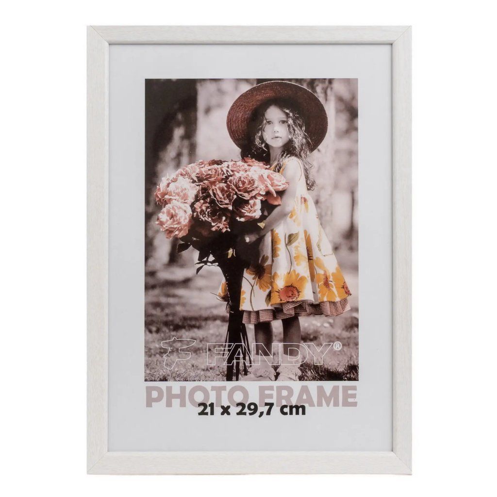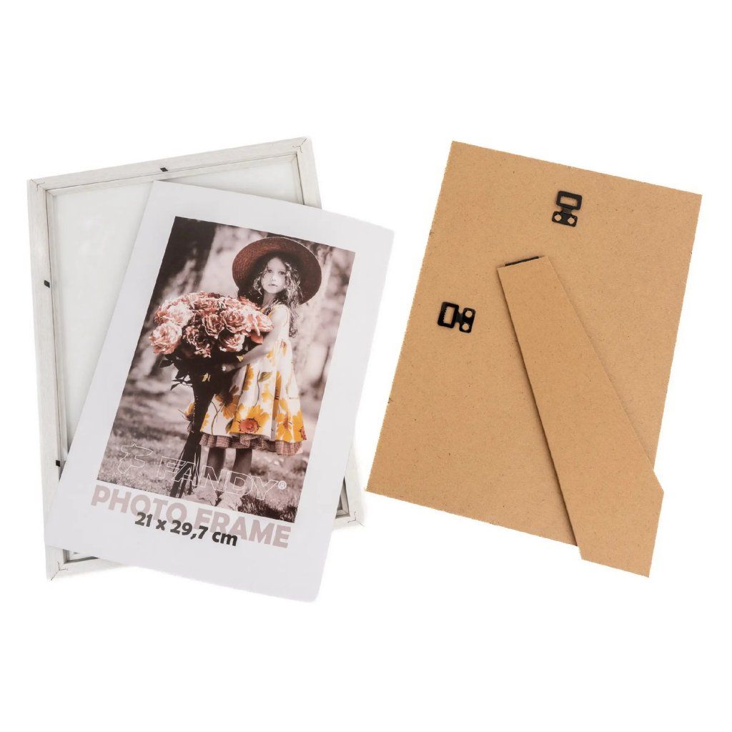 Vzpomínejte na své nejkrásnější okamžiky s tímto elegantním fotorámečkem z MDF ve bílém provedení v dekoru dřeva. Rámeček má jednoduchý, ale nadčasový design, který se hodí do každého interiéru. Je ideální na fotografii o rozměrech 21 x 29,7 cm. Celý rámeček má rozměr 23 x 32 cm, přičemž šířka lišty je 1,5 cm. Rámeček lze postavit na komodu, poličku nebo noční stolek, a také ho můžete zavěsit na zeď, a to jak horizontálně, tak i vertikálně. Fotografie je chráněna sklem a jednoduše se vkládá ze zadní strany.Doplňkové parametry