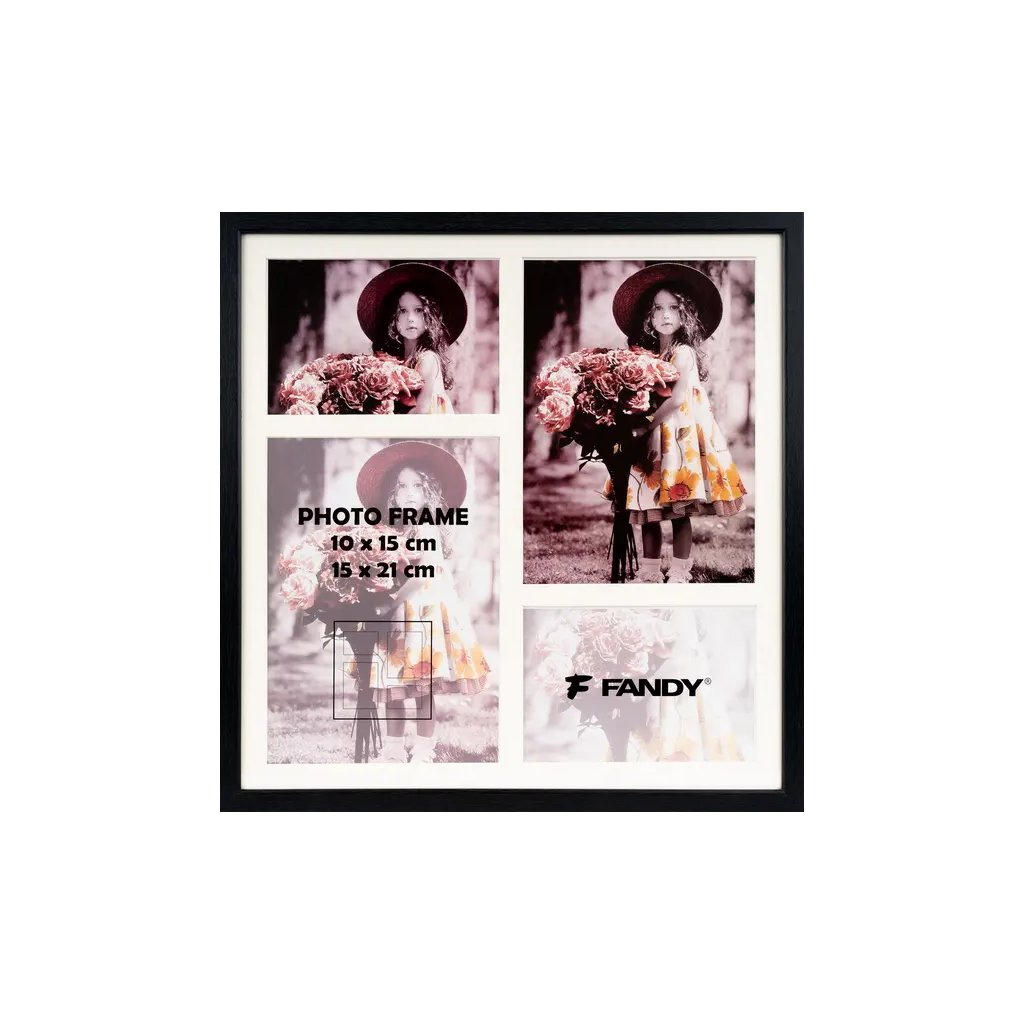 Vzpomínejte na své nejkrásnější okamžiky s tímto fotorámečkem Style Gallery v dekoru dřeva. Černý MDF rámeček je ideální na čtyři fotografie – dvě fotografie o rozměrech 10 x 15 cm a dvě fotografie o rozměrech 15 x 21 cm. Bez pasparty je do rámečku možné vložit jednu fotografii o rozměrech 35 x 36 cm. Celý rámeček má rozměr 37,5 x 38,5 cm, přičemž šířka lišty je 1,5 cm. Rámeček je určen k zavěšení na zeď vertikálně i horizontálně. Fotografie jsou chráněny sklem a do rámečku se vkládají jednoduše ze zadní strany.Doplňkové parametry