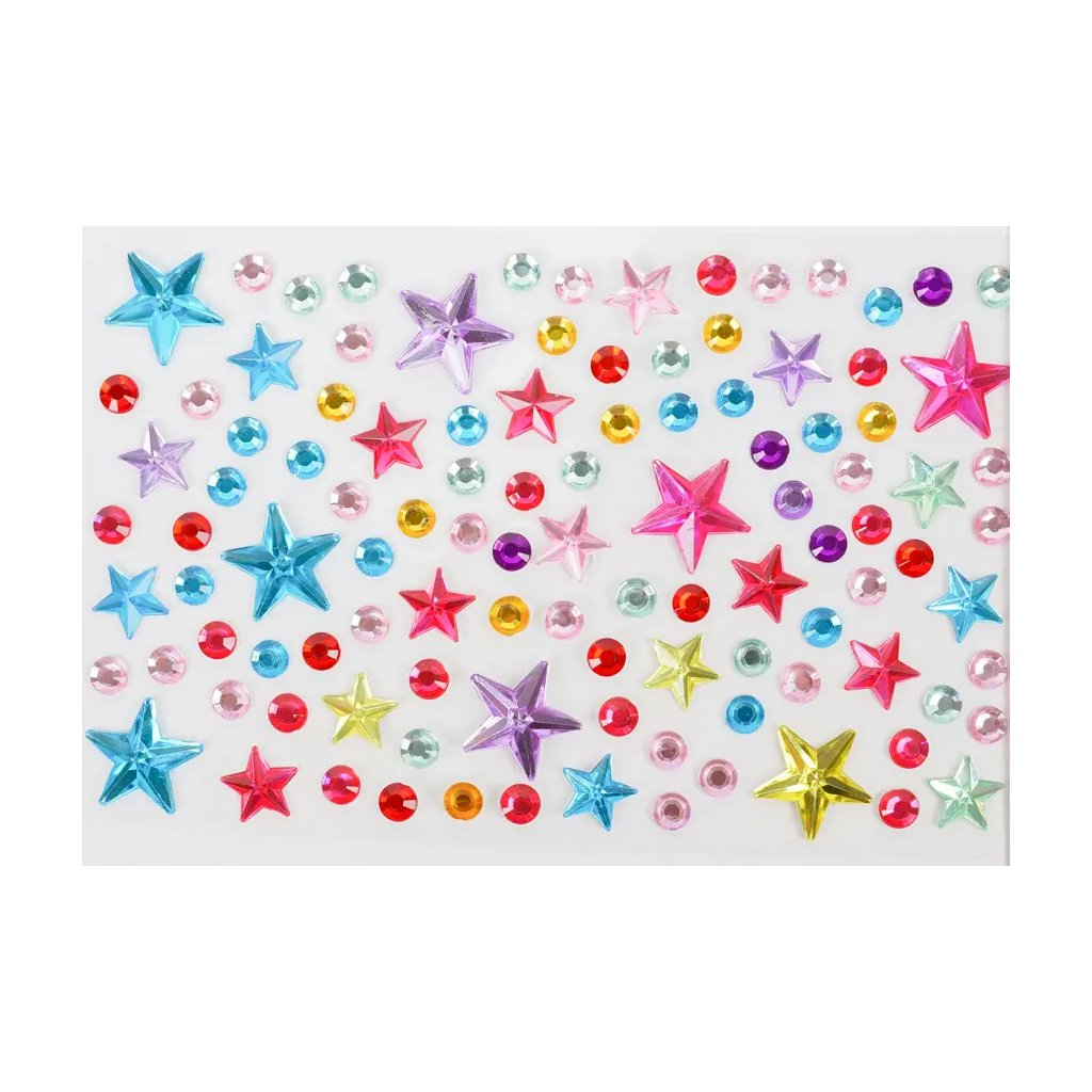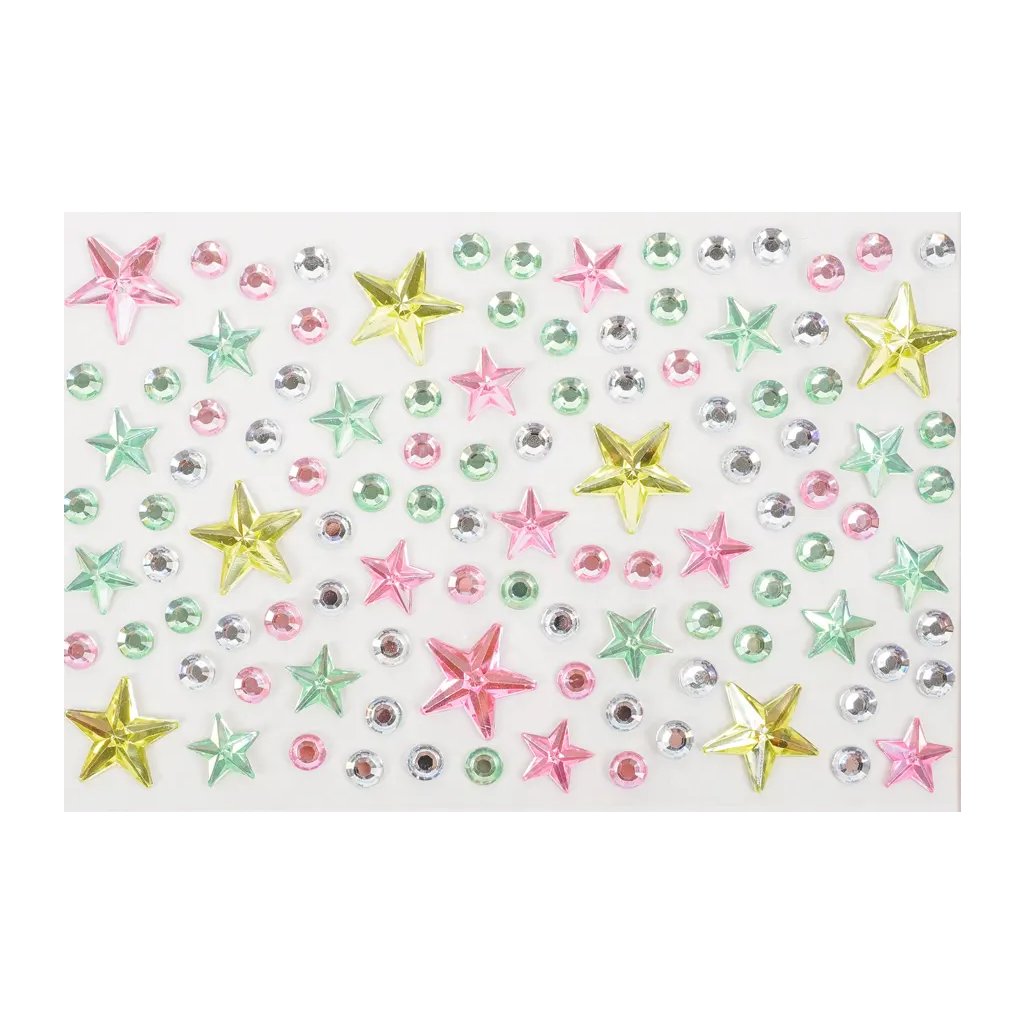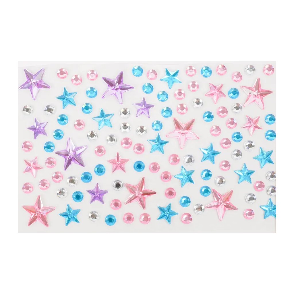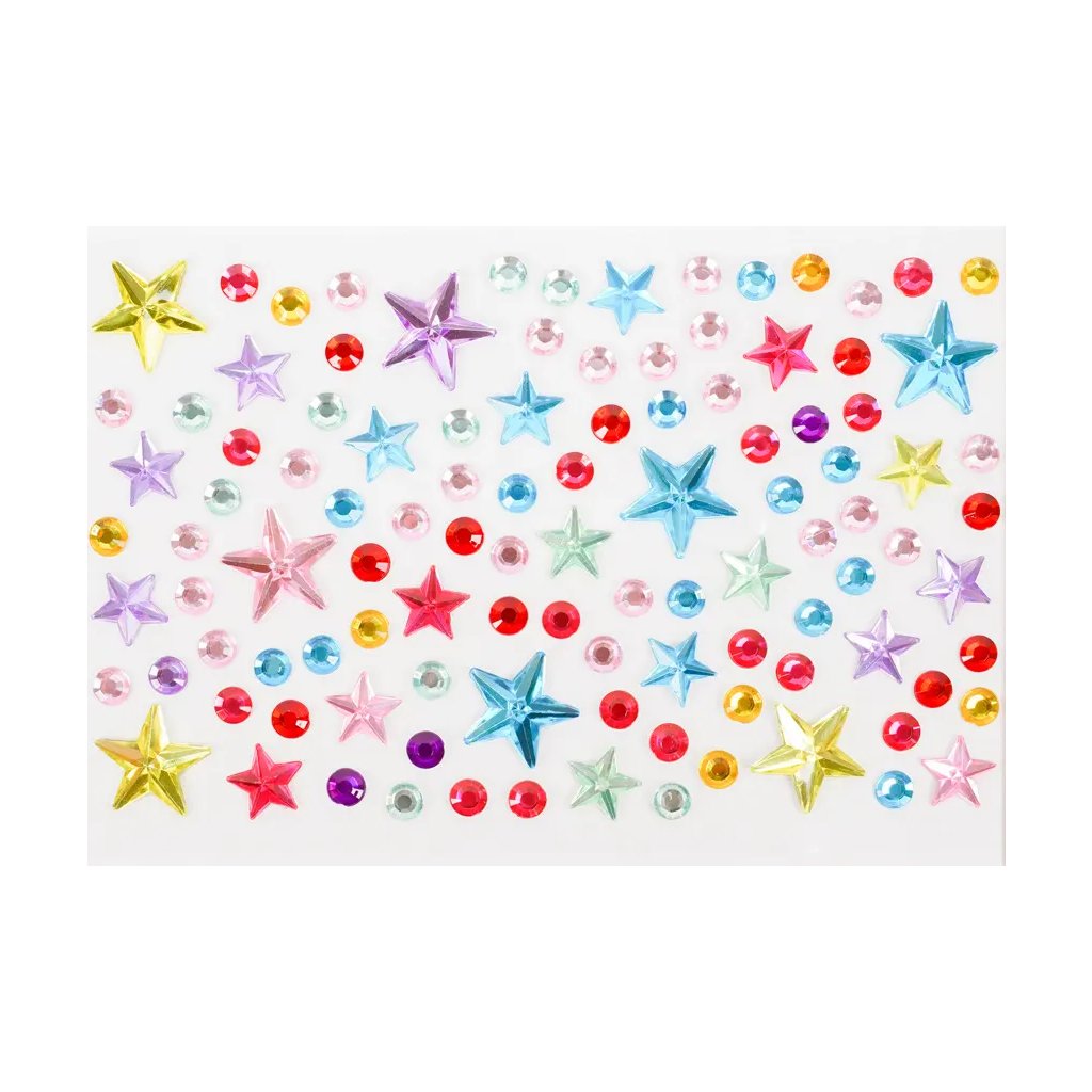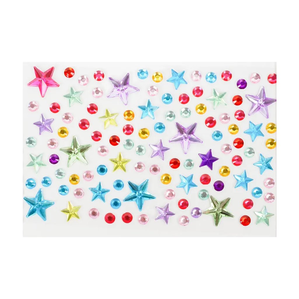 Toto balení obsahuje 10 archů samolepicích kamínků s motivem hvězdiček. Kamínky jsou v mixu barev, velikostí a tvarů, což umožňuje široké kreativní využití. Kamínky na arších o velikosti 9,5 x 15 cm jsou ideální pro zdobení přáníček, deníků, scrapbookingu či fotoalb, telefonů, tabletů, ale i nehtů, vlasů a mnoha dalších projektů.Doplňkové parametry