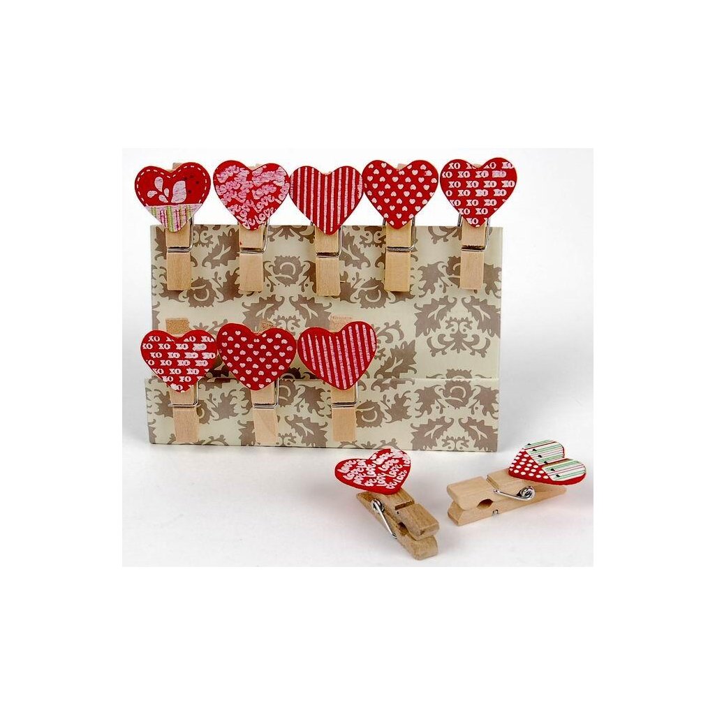 Kolíčky dekorační dřevěné Shapes 01 srdce