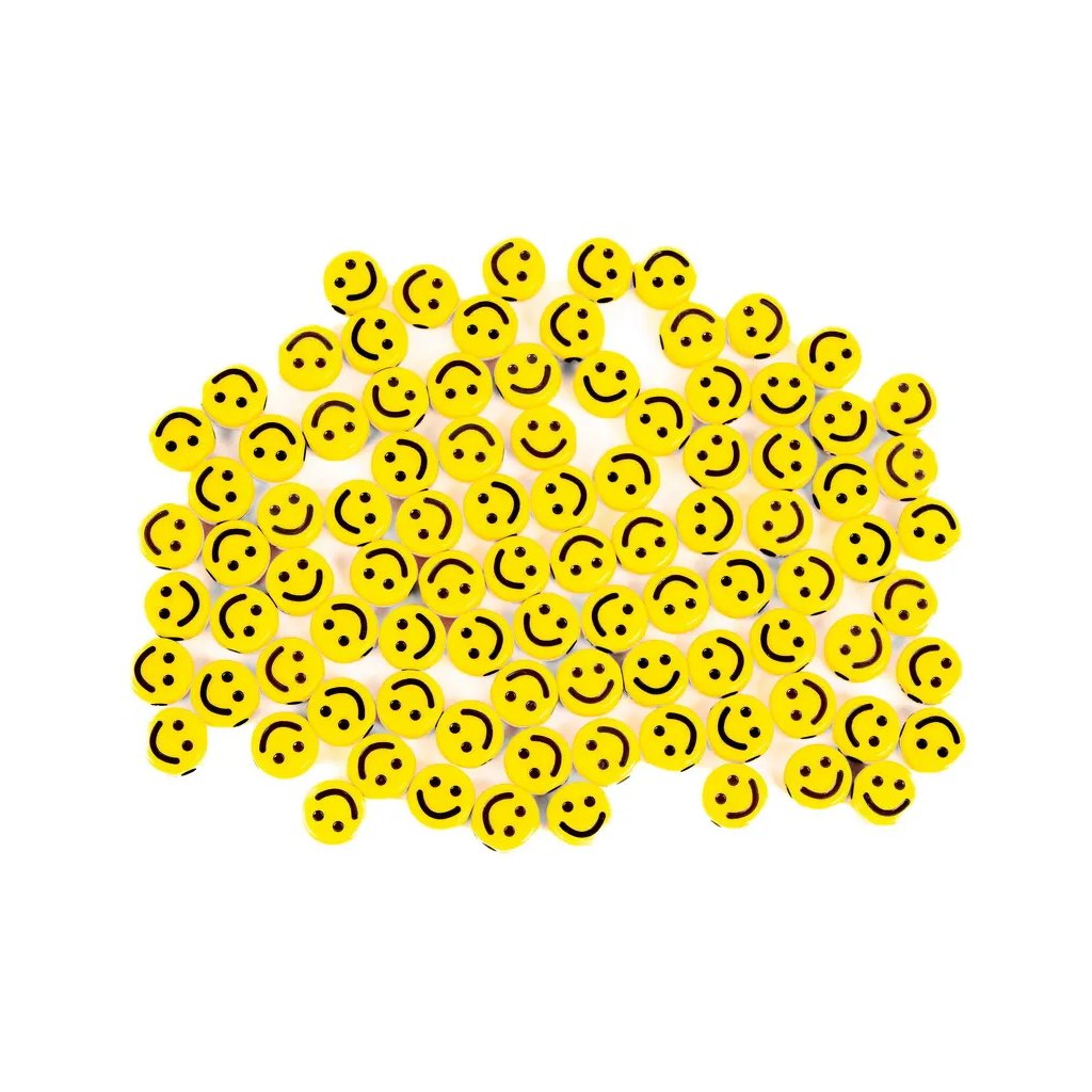 Tyto žluté dekorační korálky s motivem smajlíků jsou ideální pro kreativní tvoření. Korálky mají velikost 10 mm a jsou skvělé pro navlékání náramků, náhrdelníků nebo pro zdobení přání, krabiček a dalších projektů. Balení obsahuje 30 g korálků.Doplňkové parametry