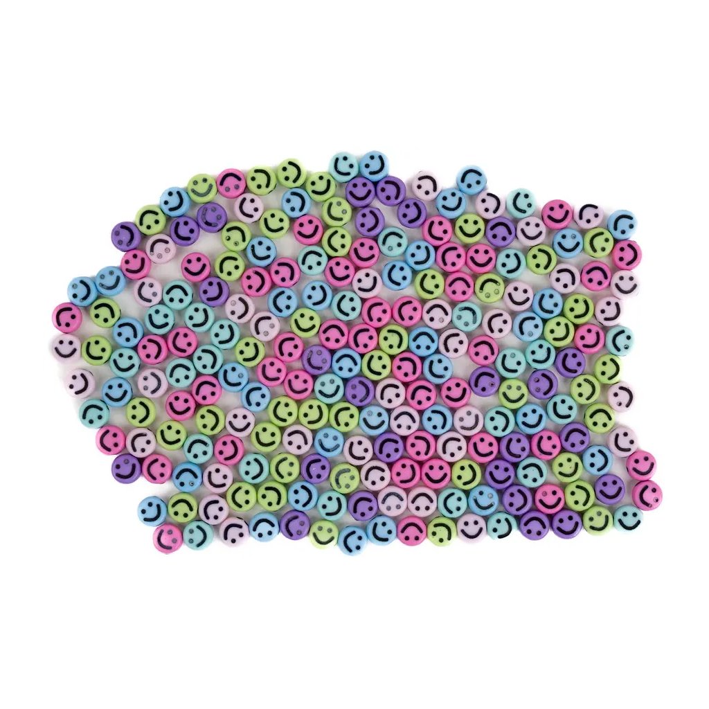 Tyto dekorační korálky s motivem barevných smajlíků v pastelových barvách jsou ideální pro kreativní tvoření. Korálky mají velikost 6 mm a jsou skvělé pro navlékání náramků, náhrdelníků nebo pro zdobení přání, krabiček a dalších projektů. Balení obsahuje 30 g korálků.Doplňkové parametry