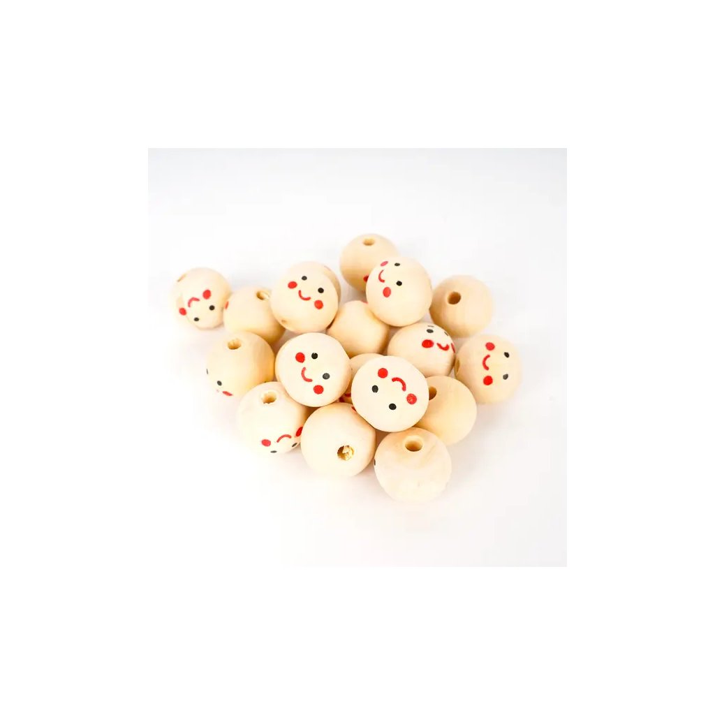 Tyto dřevěné korálky s motivem obličejů jsou skvělým doplňkem pro kreativní tvoření. Balení obsahuje 20 kusů korálků, z nichž každý má průměr 20 mm. Korálky jsou ideální pro navlékání na provázky, výrobu loutek, panenek nebo na ozdobení různých projektů.Doplňkové parametry