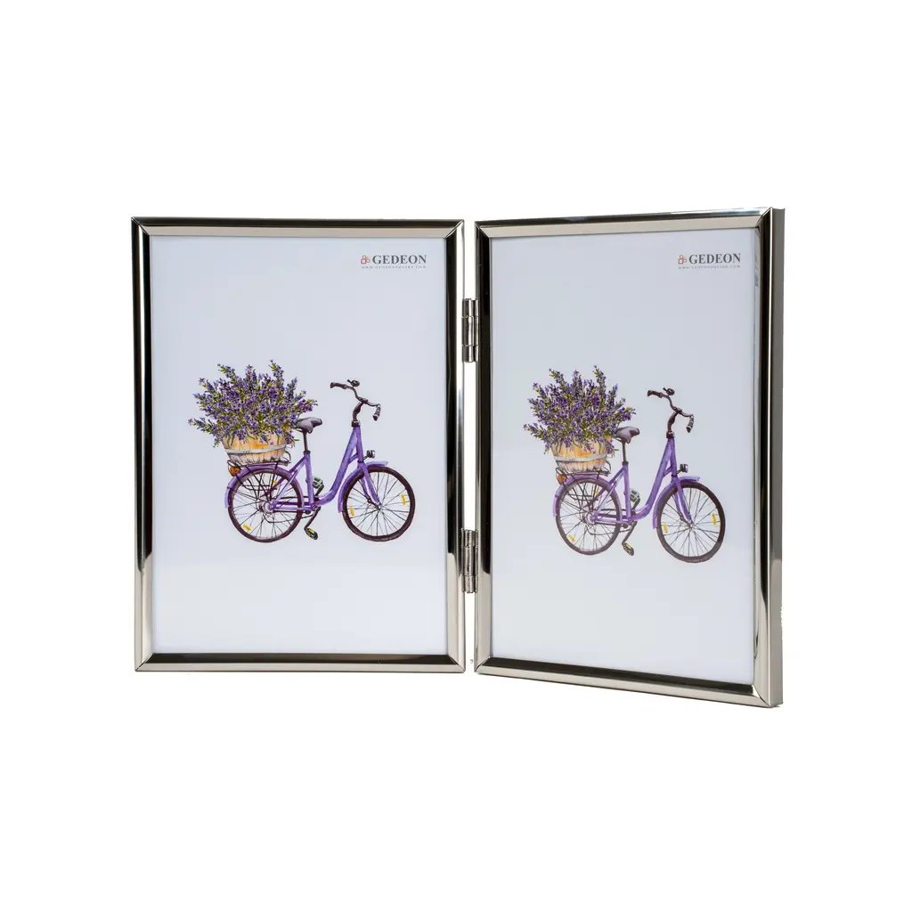 Vzpomínejte na své nejkrásnější okamžiky s tímto elegantním kovovým fotorámečkem ve stříbrném provedení. Rámeček má jednoduchý, ale nadčasový design, který se hodí do každého interiéru. Je ideální na dvě fotografie o rozměrech 15 x 21 cm. Celý rámeček má rozměr 31 x 21,5 cm, přičemž šířka lišty je 0,5 cm. Rámeček lze postavit na komodu, poličku nebo noční stolek, a to vertikálně. Fotografie jsou chráněné sklem a jednoduše se vkládají ze zadní strany.Doplňkové parametry