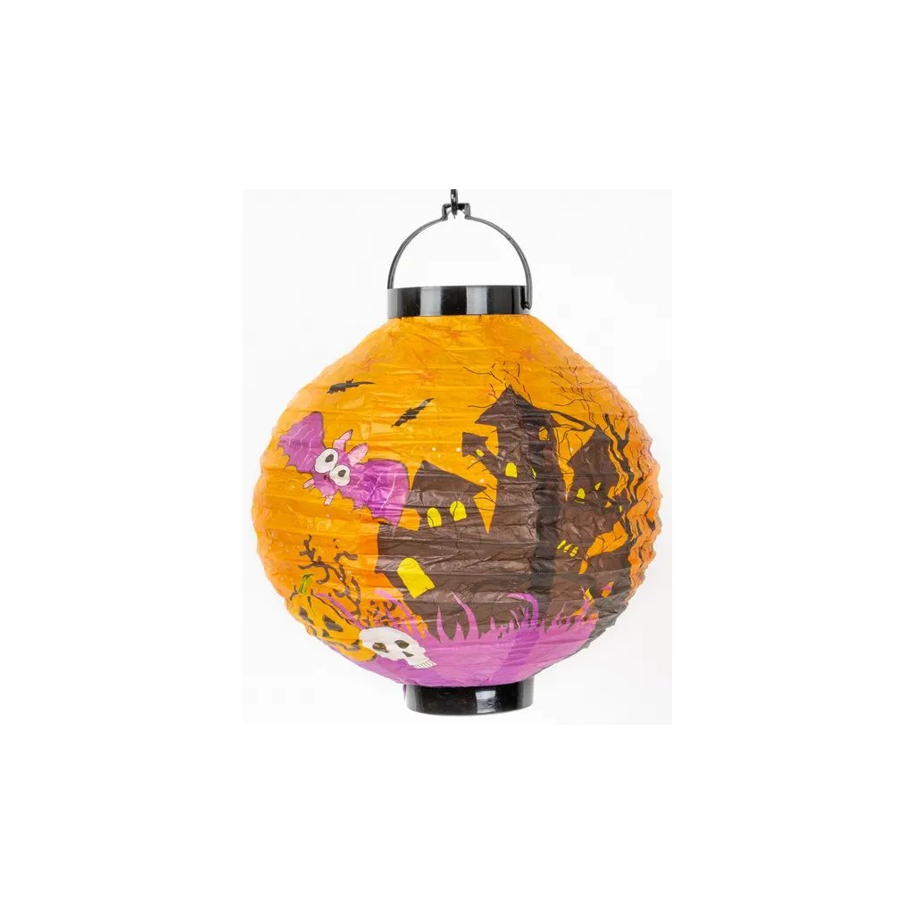 Tento skládaný papírový lampion s halloweenským motivem hradu, netopýrů dýně a lebky je skvělým doplňkem pro dekoraci interiéru, zejména během Halloweenu. Určitě s ním zazáříte v halloweenském duchařském průvodu. Lampion o průměru 20 cm je vybaven LED žárovkou, která vytváří jemné světlo. Pro napájení jsou potřeba 2x AA baterie, které nejsou součástí balení.Buďte první, kdo napíše příspěvek k této položce.