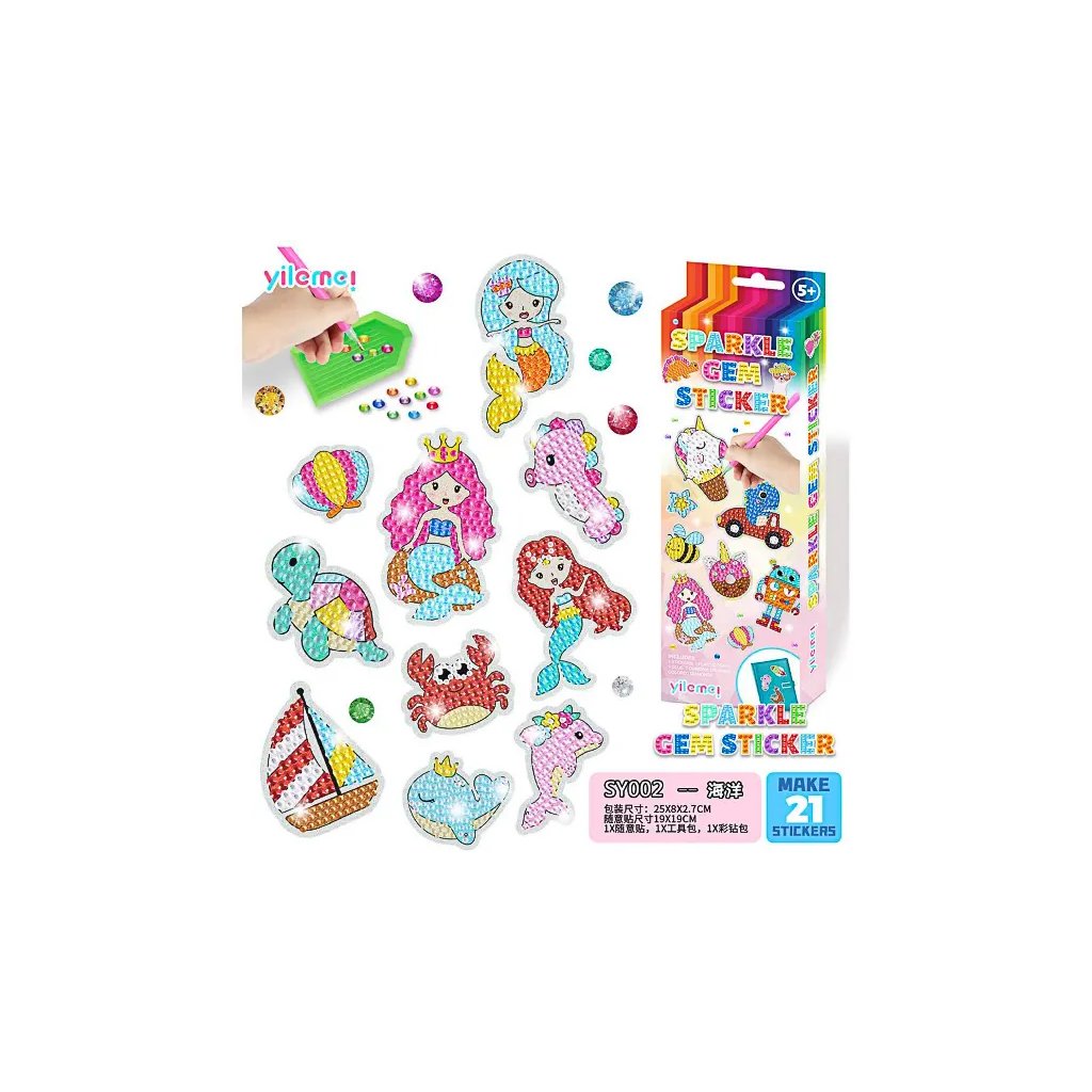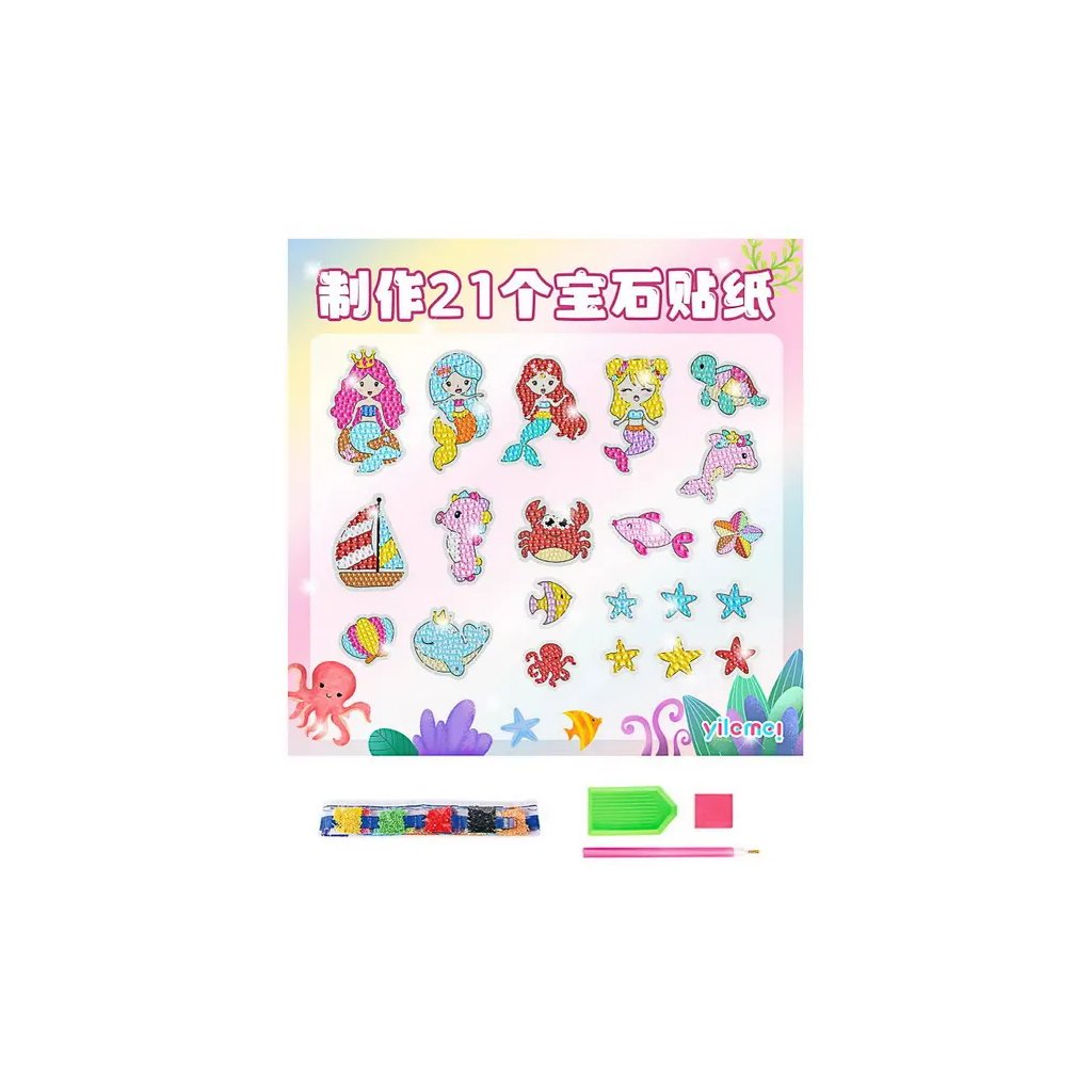 Kreativní sada s motivem podmořského světa, která rozvíjí trpělivost. Sada obsahuje 21 ks samolepicích předloh, akrylové kamínky rozdělené dle barev, plastovou nádobku pro snadnější manipulaci s kamínky a plastový nástroj pro jejich aplikaci.Doplňkové parametry