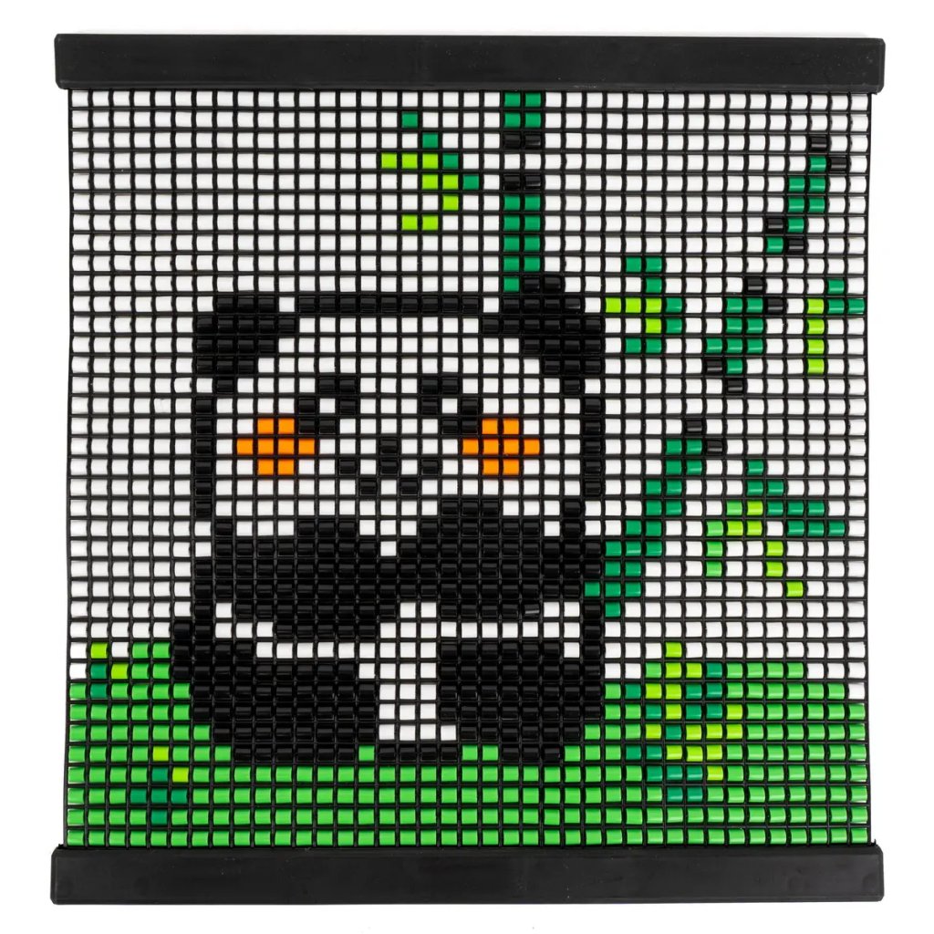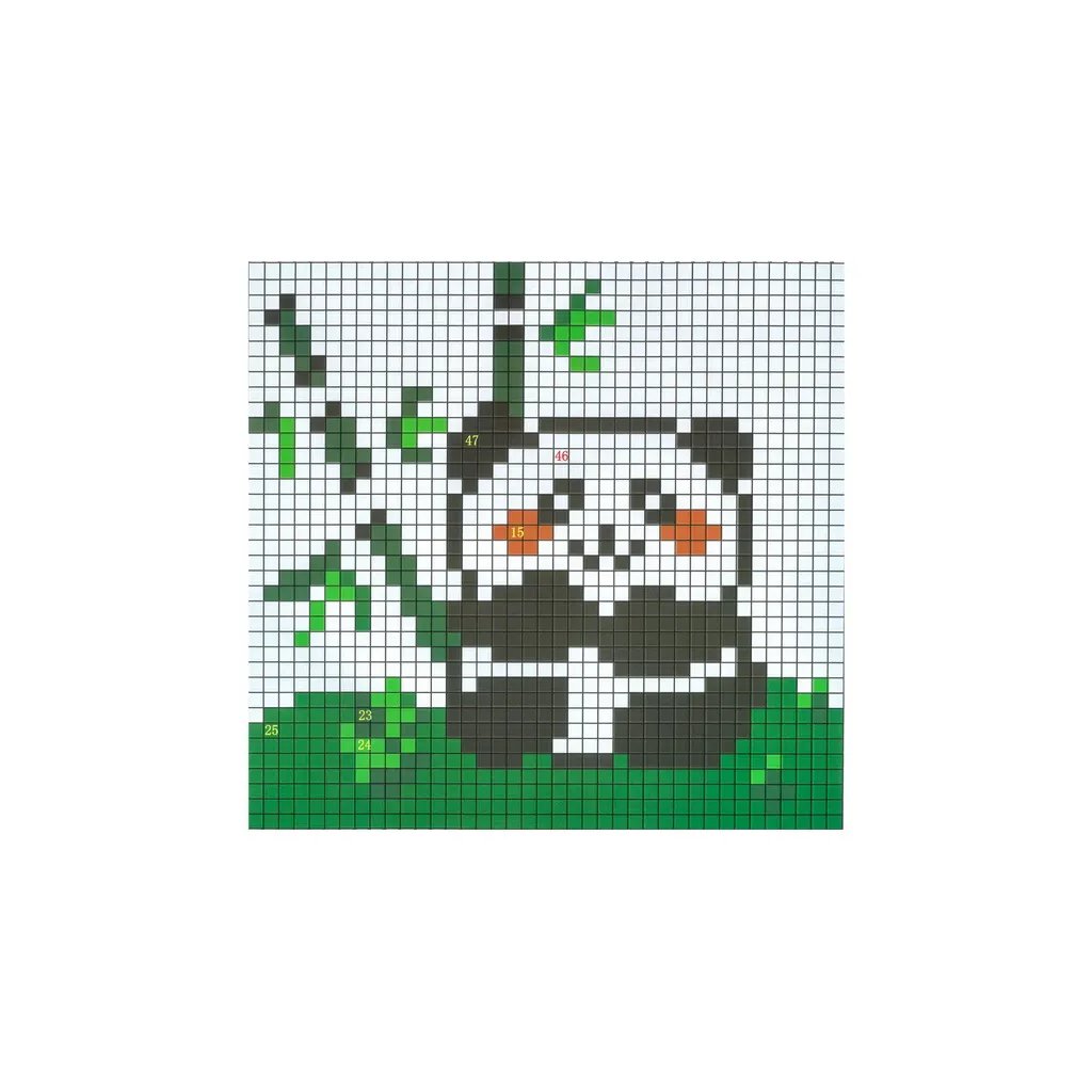 Jedná se o kreativní sadu pro děti, se kterou si vytvoří krásný 3D obrázek metodou nacvakávání korálků. Sada obsahuje vše potřebné pro mozaikovou tvorbu: předlohu (podložku s mřížkou) a obrázek s barevným schématem, který slouží jako vodítko pro umístění korálků. Motiv zobrazuje roztomilou pandu sedící uprostřed bambusového porostu na zeleném podkladu. Balení dále obsahuje korálky na nacvaknutí v odpovídajících barvách (zelené a bílé/černé) a dva černé rámečky pro finální zarámování obrázku. Předloha má rozměr 28 x 29 cm. Tato zábavná aktivita rozvíjí u dětí soustředění a jemnou motoriku.Doplňkové parametry