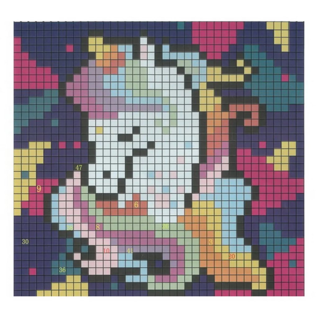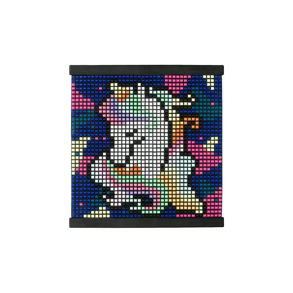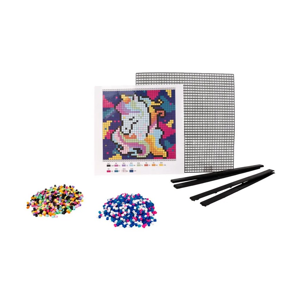 Jedná se o kreativní sadu pro děti, se kterou si vytvoří krásný 3D obrázek metodou nacvakávání korálků. Sada obsahuje vše potřebné pro mozaikovou tvorbu: předlohu (podložku s mřížkou) a obrázek s barevným schématem, který slouží jako vodítko pro umístění korálků. Motiv zobrazuje pohádkového jednorožce s duhovou hřívou na tmavě modrém pozadí. Balení dále obsahuje korálky na nacvaknutí v odpovídajících barvách a dva černé rámečky pro finální zarámování obrázku. Předloha má rozměr 28 x 29 cm. Tato zábavná aktivita rozvíjí u dětí soustředění a jemnou motoriku.Doplňkové parametry