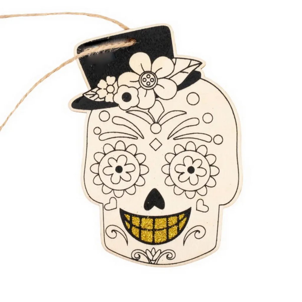 Jedná se o originální dřevěnou závěsnou ozdobu, která je určena k vlastnímu vymalování a kreativnímu dotvoření. Ozdoba má tvar stylové mexické lebky (Sugar Skull) s kloboukem, květy a úsměvem, přičemž zuby jsou zvýrazněny zlatým glitrovým lakem. Je vyrobena z přírodního dřeva a je ideální k dekoraci do interiéru, jako dárková visačka nebo jako zábavný projekt pro děti i dospělé. V horní části je opatřena jutovým provázkem pro snadné zavěšení. Velikost ozdoby je 13 cm.Buďte první, kdo napíše příspěvek k této položce.