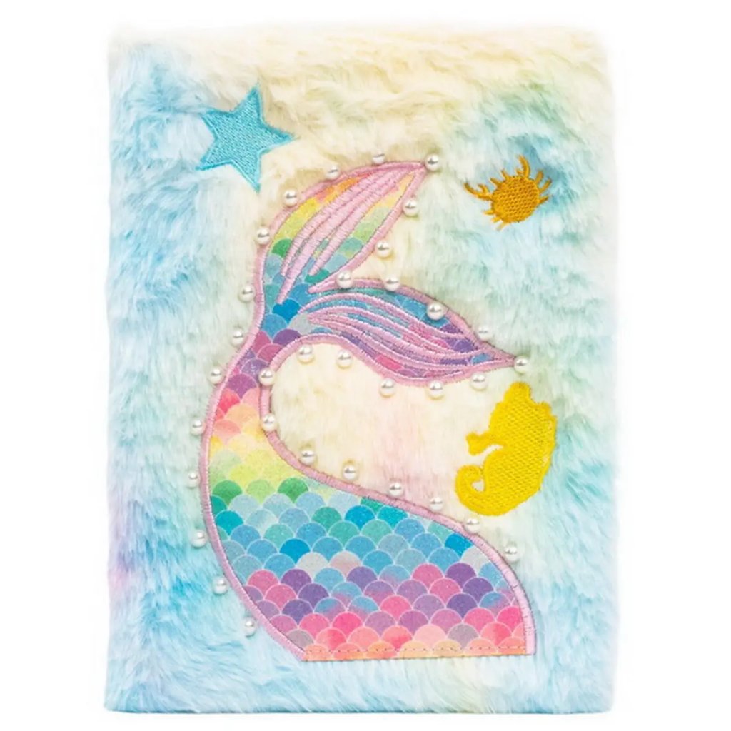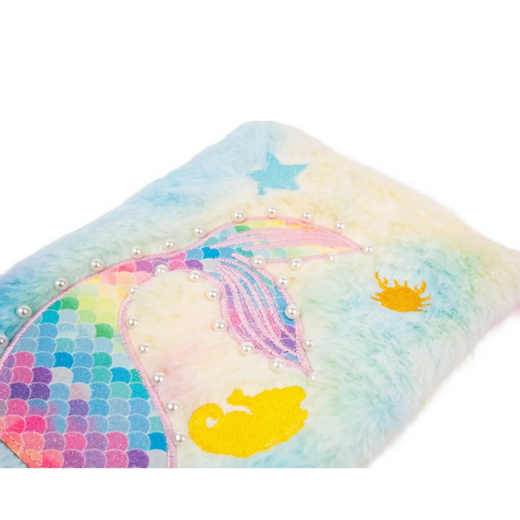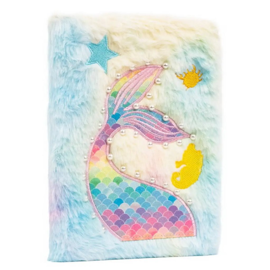 Tento mimořádně hebký plyšový památník formátu A5 v jemných pastelových barvách nadchne svým snovým designem s mořskou tématikou. Přední stranu zdobí detailní výšivka ocasu mořské panny s barevnými šupinkami, která je doplněna o aplikaci mořského koníka, hvězdice a zářícího sluníčka. Celkový luxusní vzhled dotvářejí drobné bílé perličky našité přímo na huňatém povrchu. Památník o rozměru 14,3 x 21 cm obsahuje 80 listů (rozměr listu 13,8 x 20,6 cm) a je ideálním místem pro všechna tajná přání a kreativní nápady.Doplňkové parametry