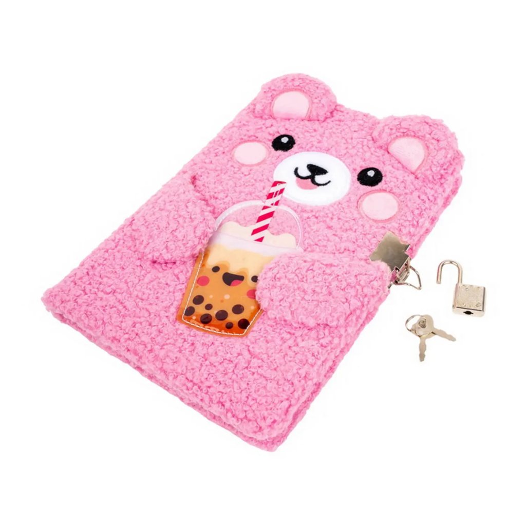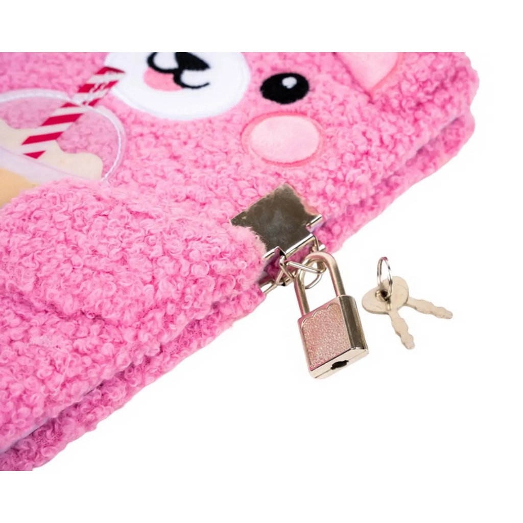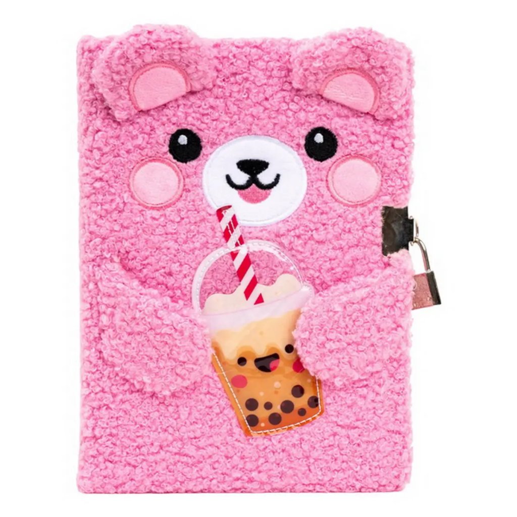 Tento mimořádně hebký plyšový památník formátu A5 v sytě růžové barvě vyniká svou unikátní texturou připomínající beránka. Přední stranu zdobí roztomilý vyšívaný obličej medvídka s vystouplými oušky, který v tlapkách drží aplikaci oblíbeného bubble tea s veselým obličejem a pruhovaným brčkem. Památník o rozměru 14,3 x 21 cm obsahuje 80 listů (rozměr listu 13,8 x 20,6 cm) a je vybaven kovovým zámkem se dvěma klíči, který zajistí soukromí pro všechna dětská tajemství a kresby.Doplňkové parametry