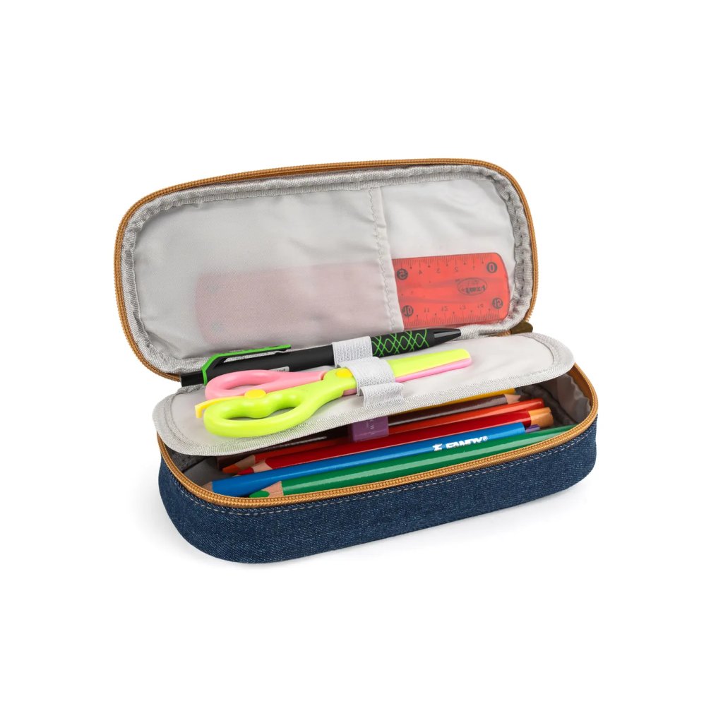 Tento stylový textilní penál etue v tmavě modrém provedení s designem imitujícím denim je ideální volbou pro přehledné uložení psacích potřeb školáků i studentů. Penál vyniká svým omyvatelným povrchem, který zaručuje snadnou údržbu a dlouhou životnost i při každodenním používání. Je vybaven praktickým zipem, který zajišťuje rychlý a bezpečný přístup k tužkám, pastelkám a dalším drobnostem. S rozměry 21,5 x 9 x 5,5 cm nabízí dostatek prostoru pro vše potřebné, aniž by zabíral příliš místa v batohu. Funkční design s ozdobným nášivkem "N" dělá z tohoto penálu stylový doplněk do školyDoplňkové parametry