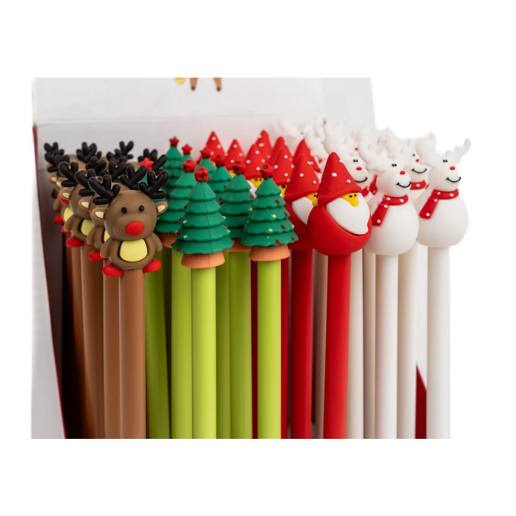 Jedná se o plastové gelové pero Silky Star in dream s motivem stromečku, sobů nebo santy na jeho konci. Pero s víčkem píše modrým inkoustem o šířce stopy 0,5 mm a má vyměnitelnou náplň F-Expert/Techjob Office. Je v různých barevných kombinacích, ideální pro školáky, studenty i jako veselý doplněk do kanceláře. Pokud vám záleží na konkrétním designu, specifikujte jej v poznámkách objednávky.Doplňkové parametry