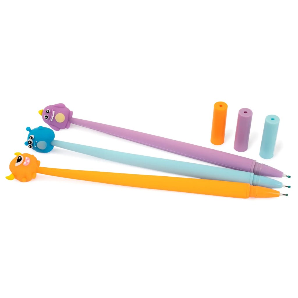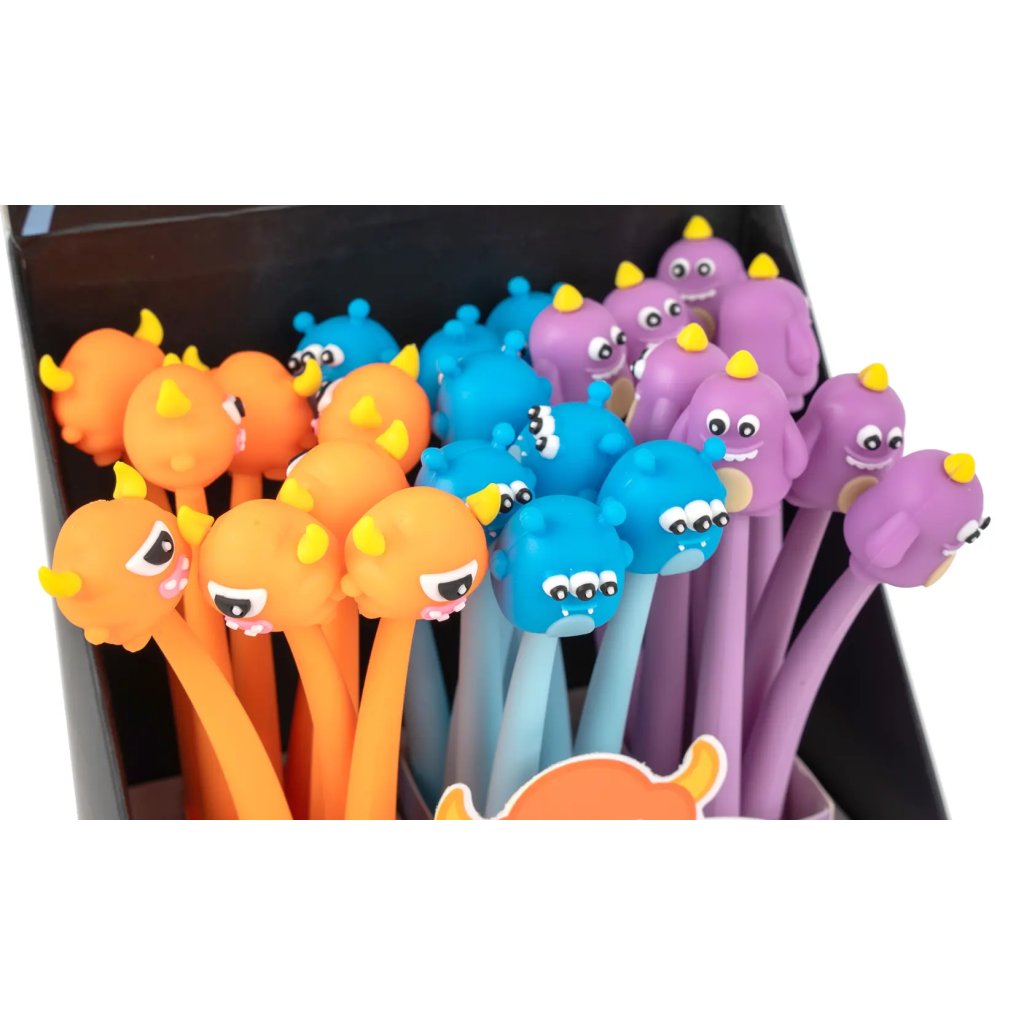 Jedná se o silikonové gelové pero Silky Monsters s tělem z pružného materiálu a motivem příšerek na jeho konci. Pero s víčkem píše modrým inkoustem o šířce stopy 0,5 mm a má vyměnitelnou náplň F-Expert/Techjob Office. Je v různých barevných kombinacích, ideální pro školáky, studenty i jako veselý doplněk do kanceláře. Pokud vám záleží na konkrétním designu, specifikujte jej v poznámkách objednávky.Doplňkové parametry