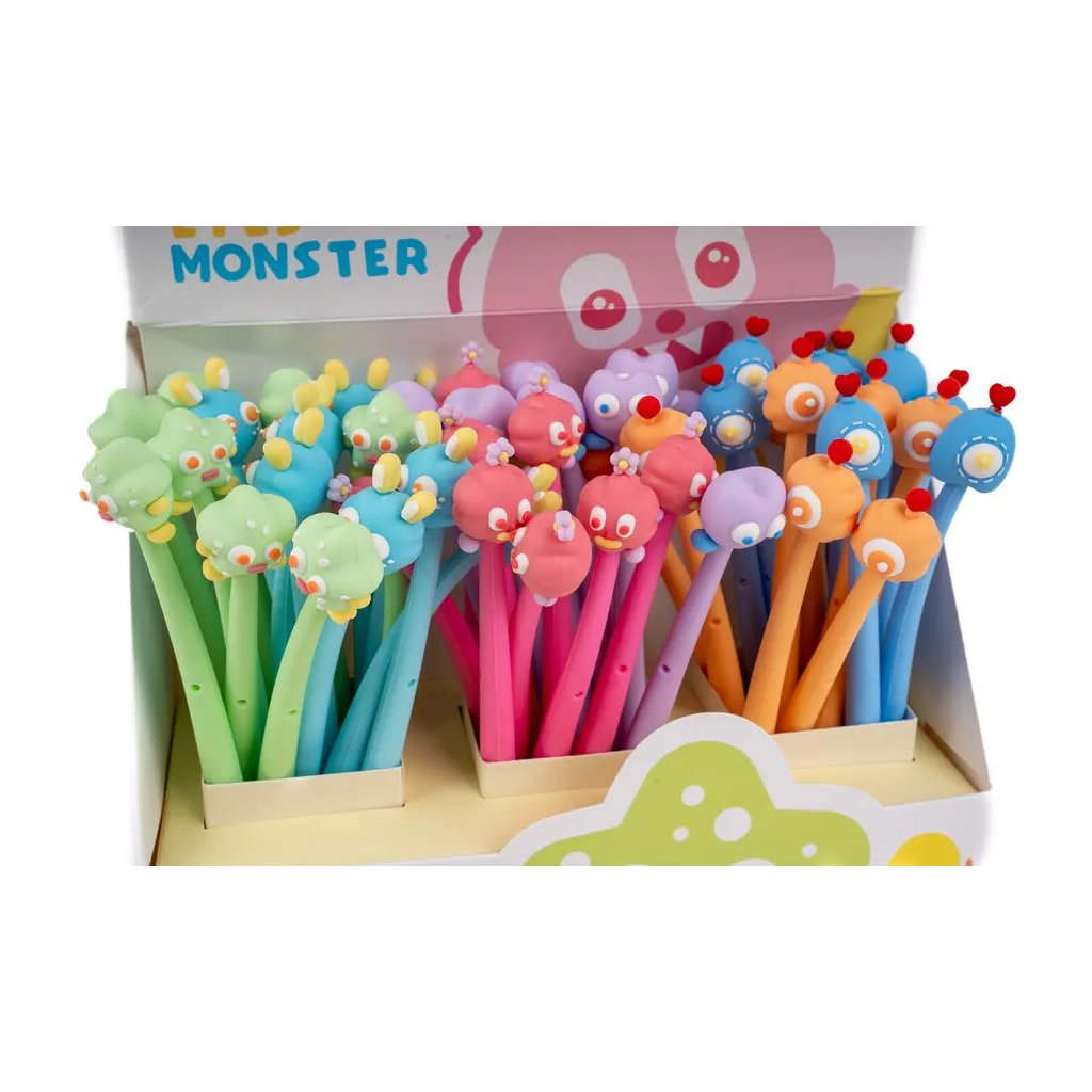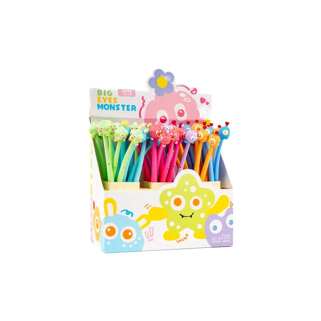 Jedná se o silikonové gelové pero Silky Big eyes monster s tělem z pružného materiálu a motivem příšerek na jeho konci. Pero s víčkem píše modrým inkoustem o šířce stopy 0,5 mm a má vyměnitelnou náplň F-Expert/Techjob Office. Je v různých barevných kombinacích, ideální pro školáky, studenty i jako veselý doplněk do kanceláře. Pokud vám záleží na konkrétním designu, specifikujte jej v poznámkách objednávky.Doplňkové parametry