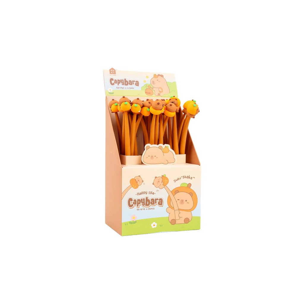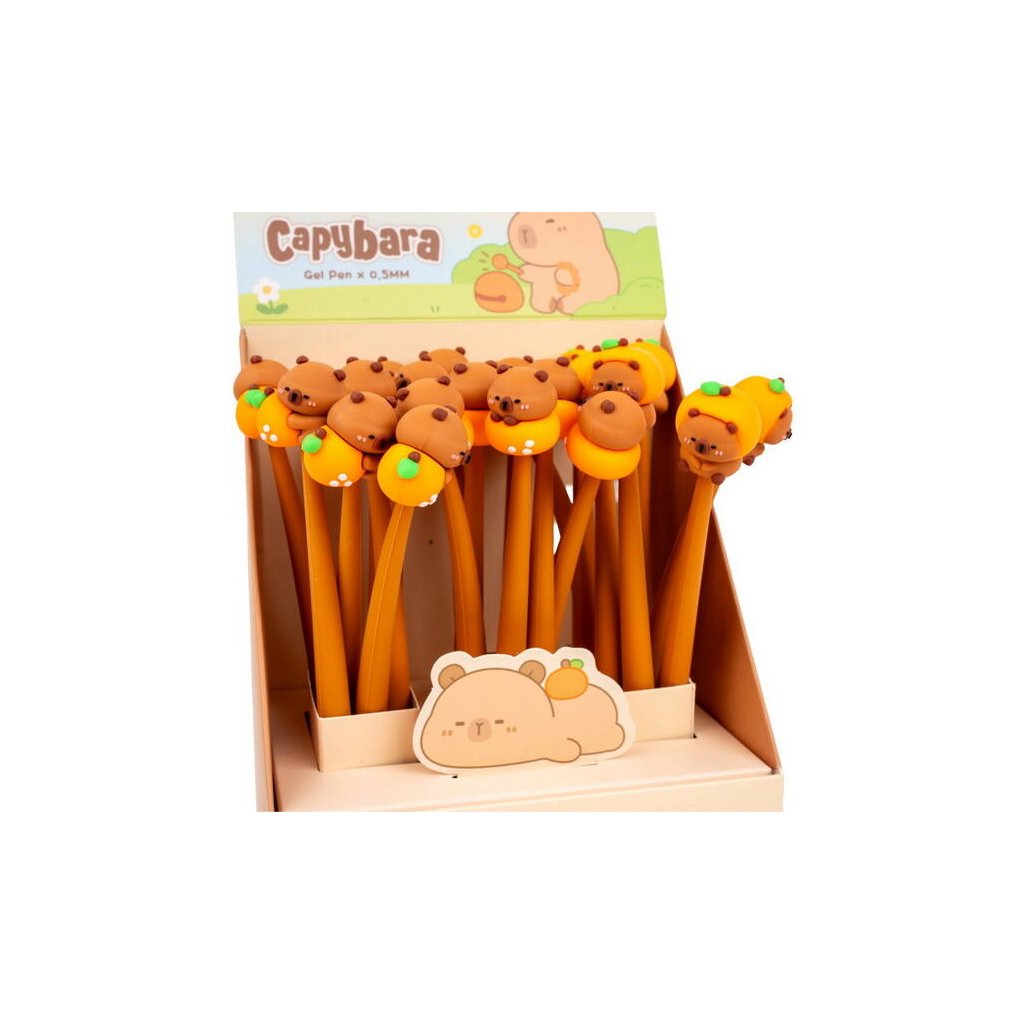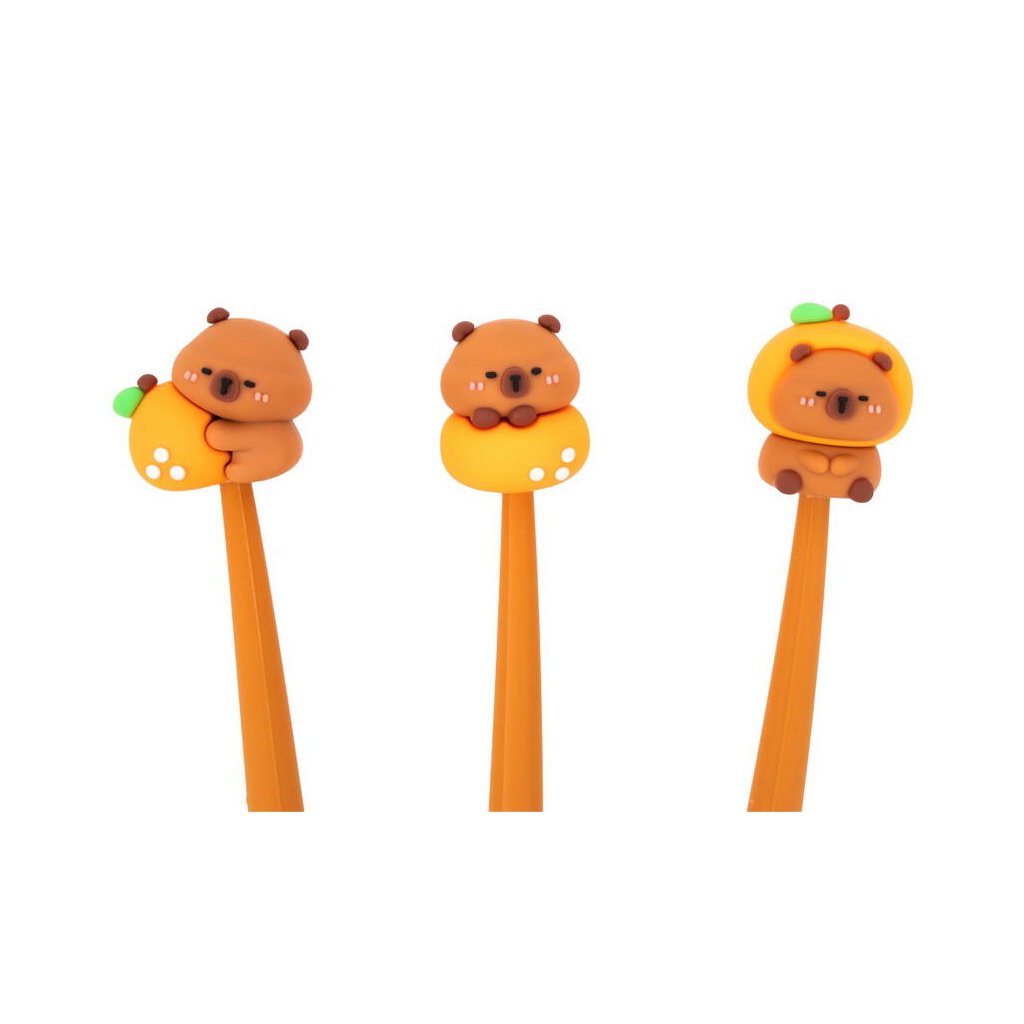Jedná se o gelové pero s roztomilým a hravým designem s motivem kapybary a oranžové dýně/ovoce. Pero je vyrobeno z pružného silikonového materiálu a má víčko. Je vybaveno kvalitní vyměnitelnou náplní typu F-Expert/Techjob Office. Píše modrým inkoustem s jemnou šíří stopy 0,5 mm. Cena je uvedena za 1 kus. Pero je dodáváno v balení jako mix vzorů a barev. Pokud vám záleží na konkrétním motivu (barvě), specifikujte jej v poznámce objednávky.Doplňkové parametry