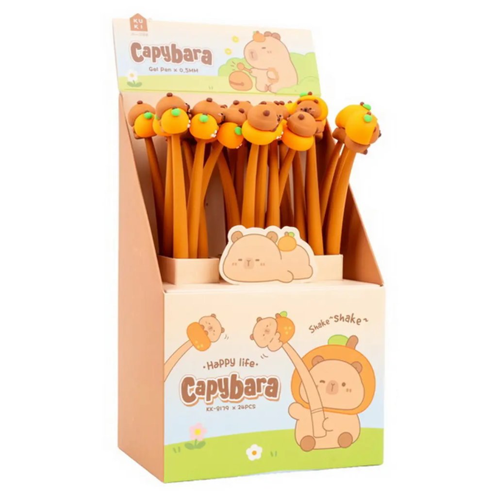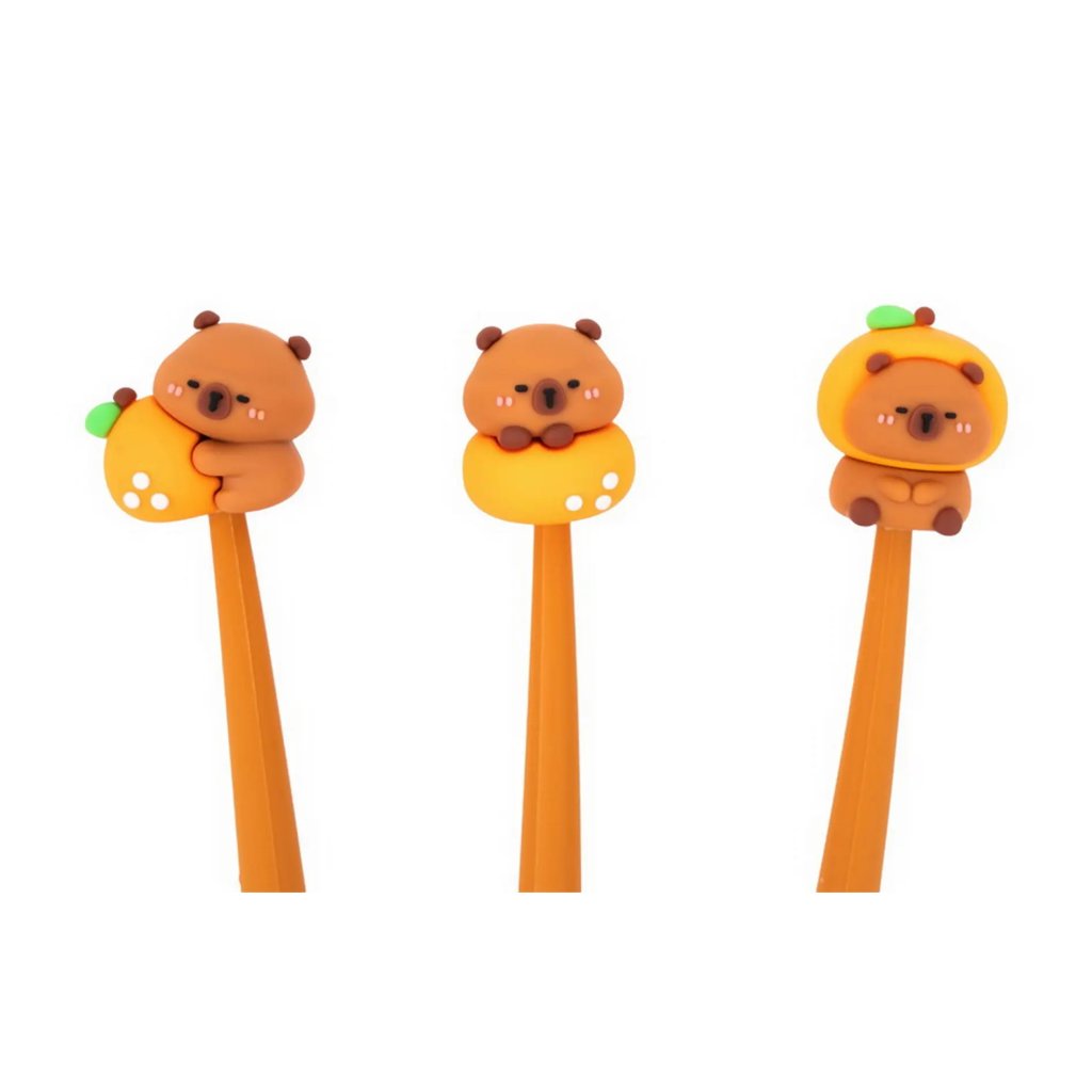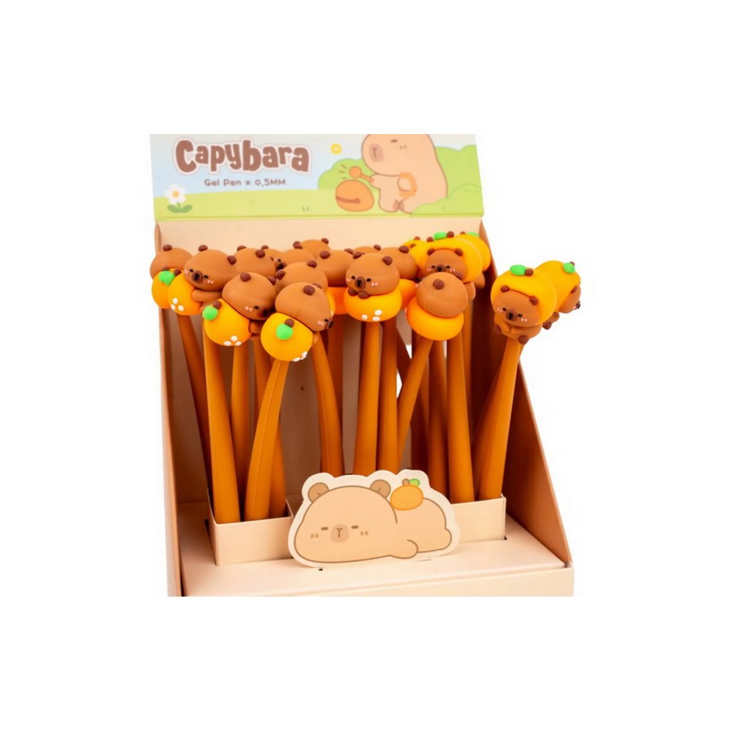Jedná se o gelové pero s roztomilým a hravým designem s motivem kapybary a oranžové dýně/ovoce. Pero je vyrobeno z pružného silikonového materiálu a má víčko. Je vybaveno kvalitní vyměnitelnou náplní typu F-Expert/Techjob Office. Píše modrým inkoustem s jemnou šíří stopy 0,5 mm. Cena je uvedena za 1 kus. Pero je dodáváno v balení jako mix vzorů a barev. Pokud vám záleží na konkrétním motivu (barvě), specifikujte jej v poznámce objednávky.Doplňkové parametry