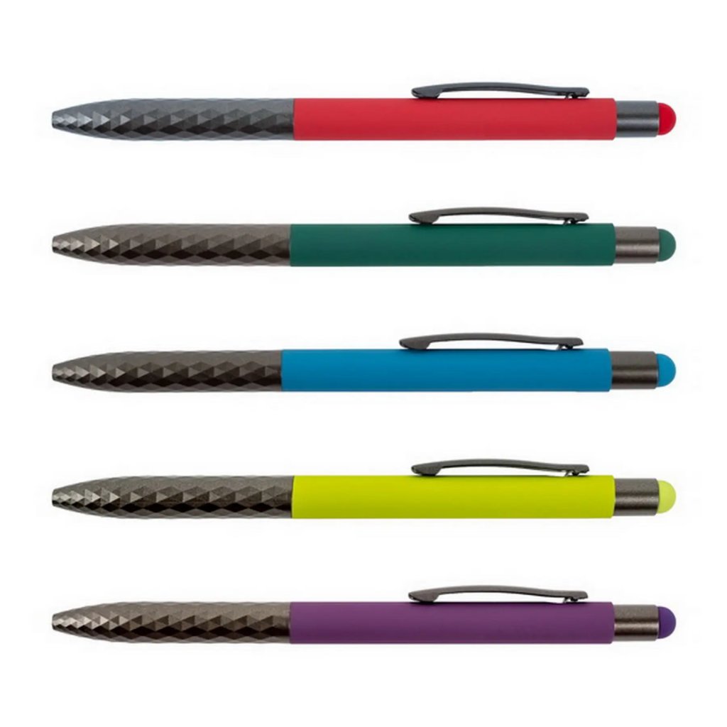 Toto multifunkční kovové kuličkové pero v moderním designu je ideálním společníkem pro práci i studium. Je vybaveno praktickým stiskacím mechanismem a speciálním dotykovým hrotem pro snadné ovládání smartphonů, tabletů a notebooků s kapacitními displeji. Pro maximální pohodlí při psaní je pero opatřeno strukturovanou úchopovou částí, která zabraňuje klouzání. Díky kvalitnímu semi-gelovému inkoustu je psaní velmi plynulé. Píše modrým inkoustem s tenkou šíří stopy 0,5 mm a využívá vyměnitelnou náplň F-411. Produkt je dodáván v atraktivním mixu barev. Upozornění: Pokud máte zájem o konkrétní motiv, uveďte jej prosím do poznámky v objednávce.Doplňkové parametry